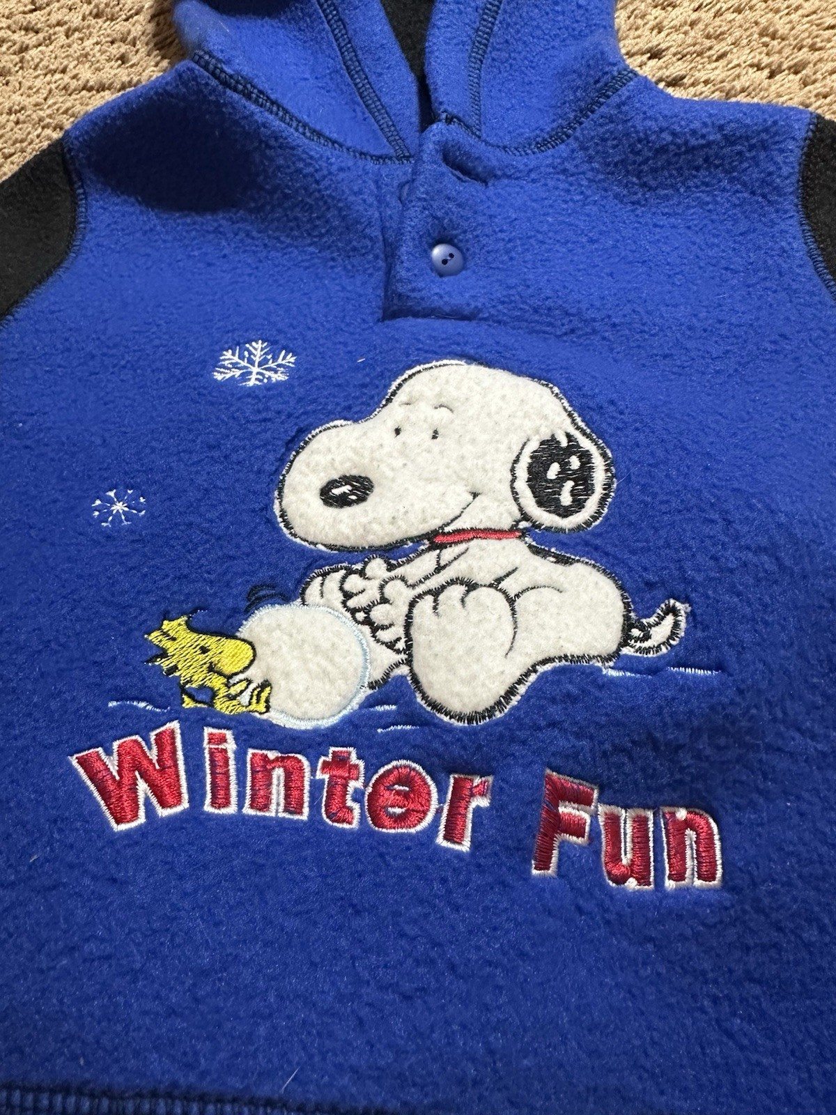 Vintage Baby Snoopy Peanuts 3/6 Mo Fleece Hooded Pullover Sweatshirt Winter Fun