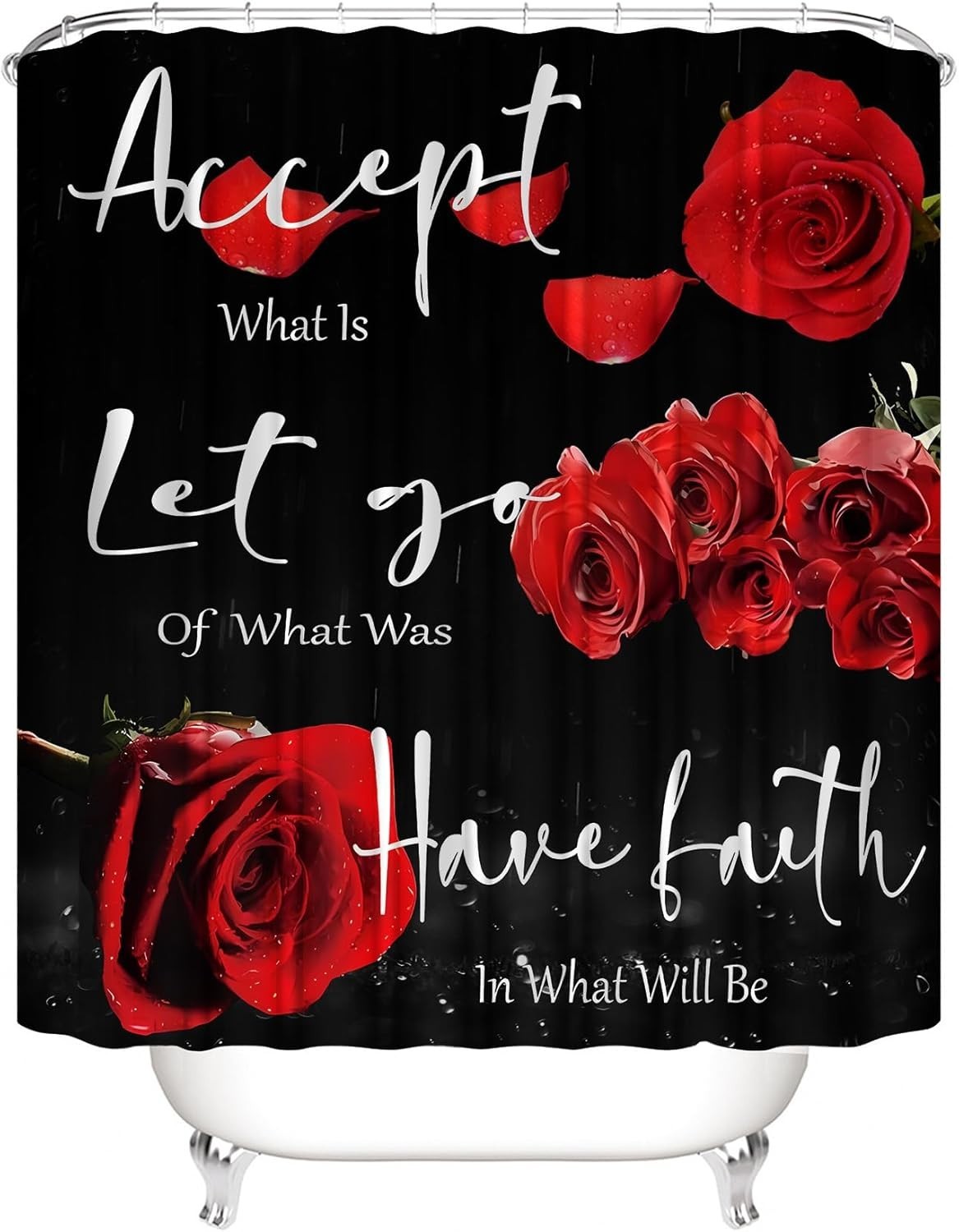 Beautiful Red Rose Shower Curtain Rug Set - 4 Complete Bathroom Accessories