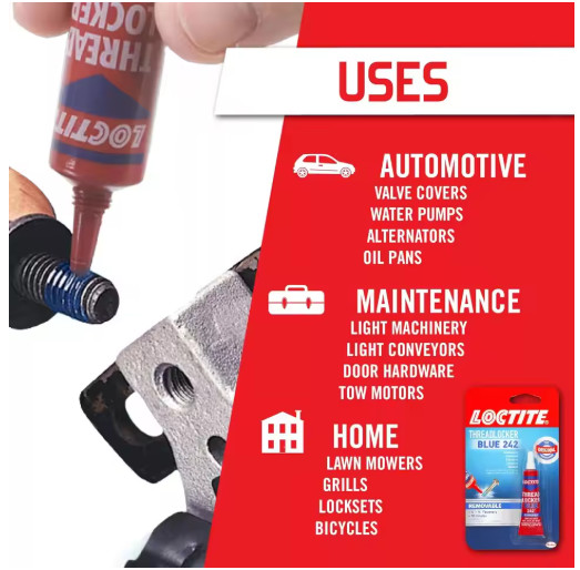 Loctite Blue 242 Threadlocker Removable Medium Strength Nut Bolt Glue