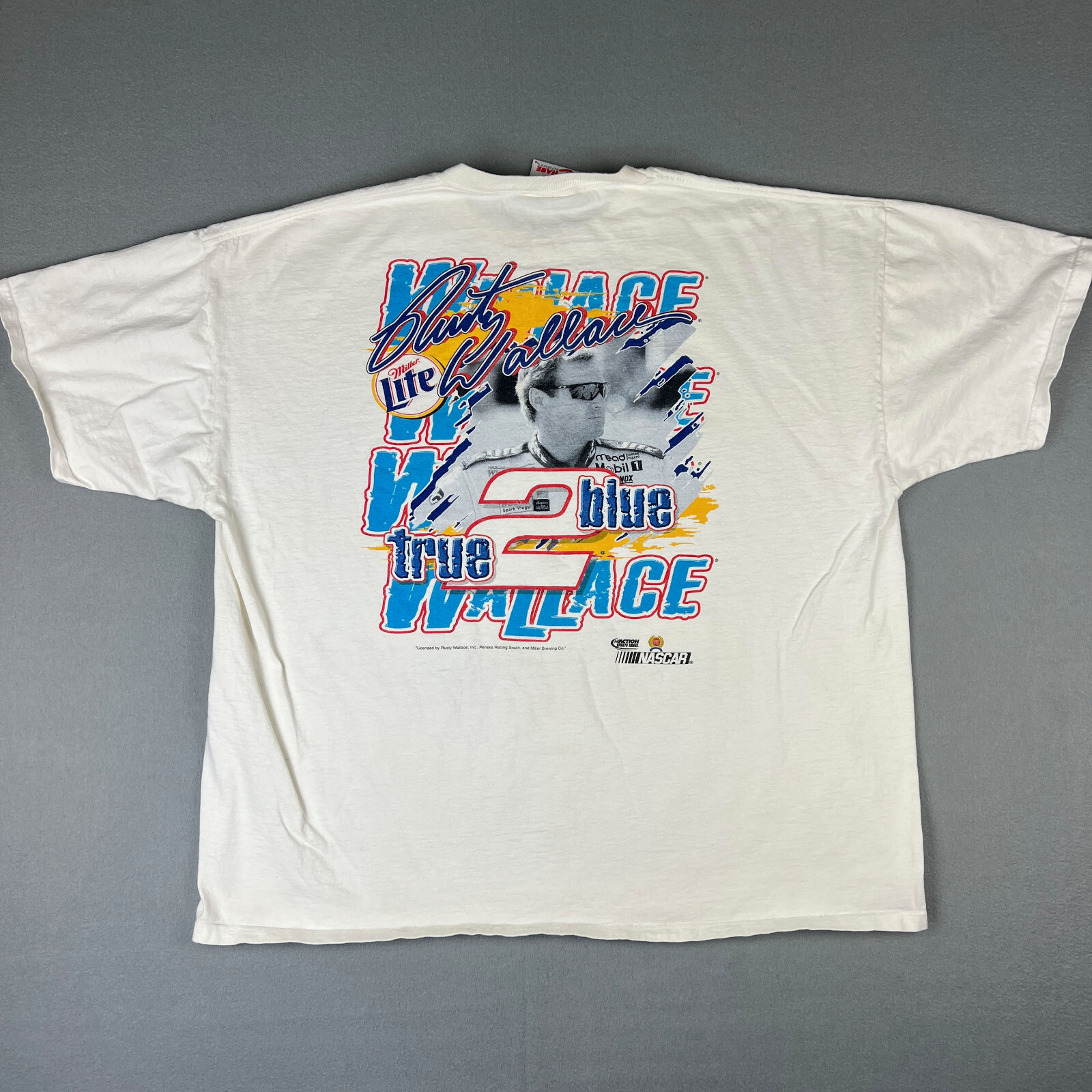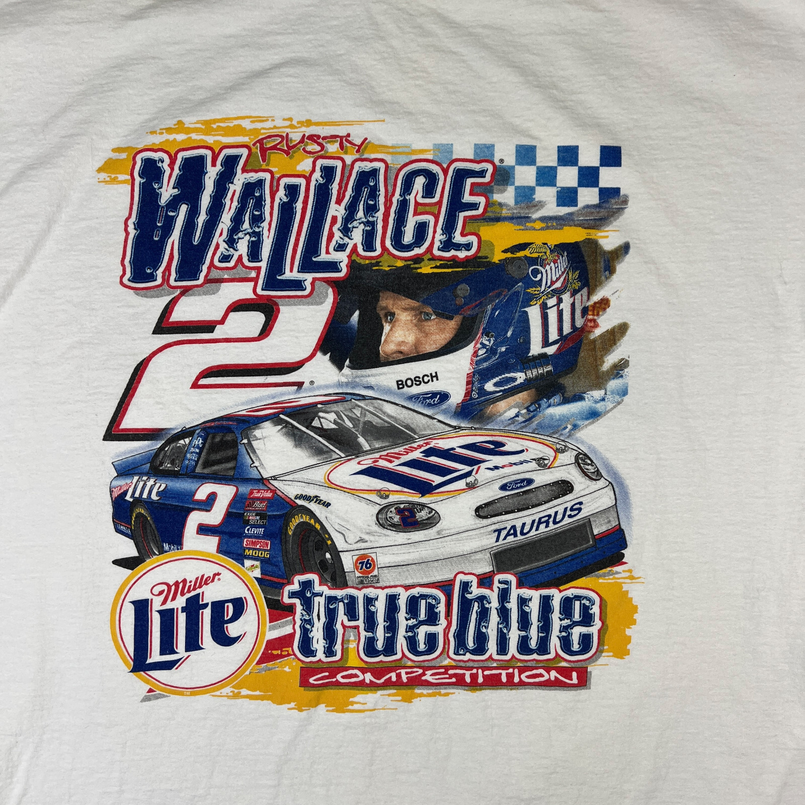 VTG Rusty Wallace NASCAR T Shirt Mens 2XL Miller Lite 2 Car True Blue Racing