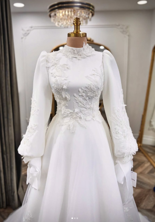 как выглядит Long Sleeves Wedding Dresses White High Neck Ivory A Line Elegant Bridal Gowns фото