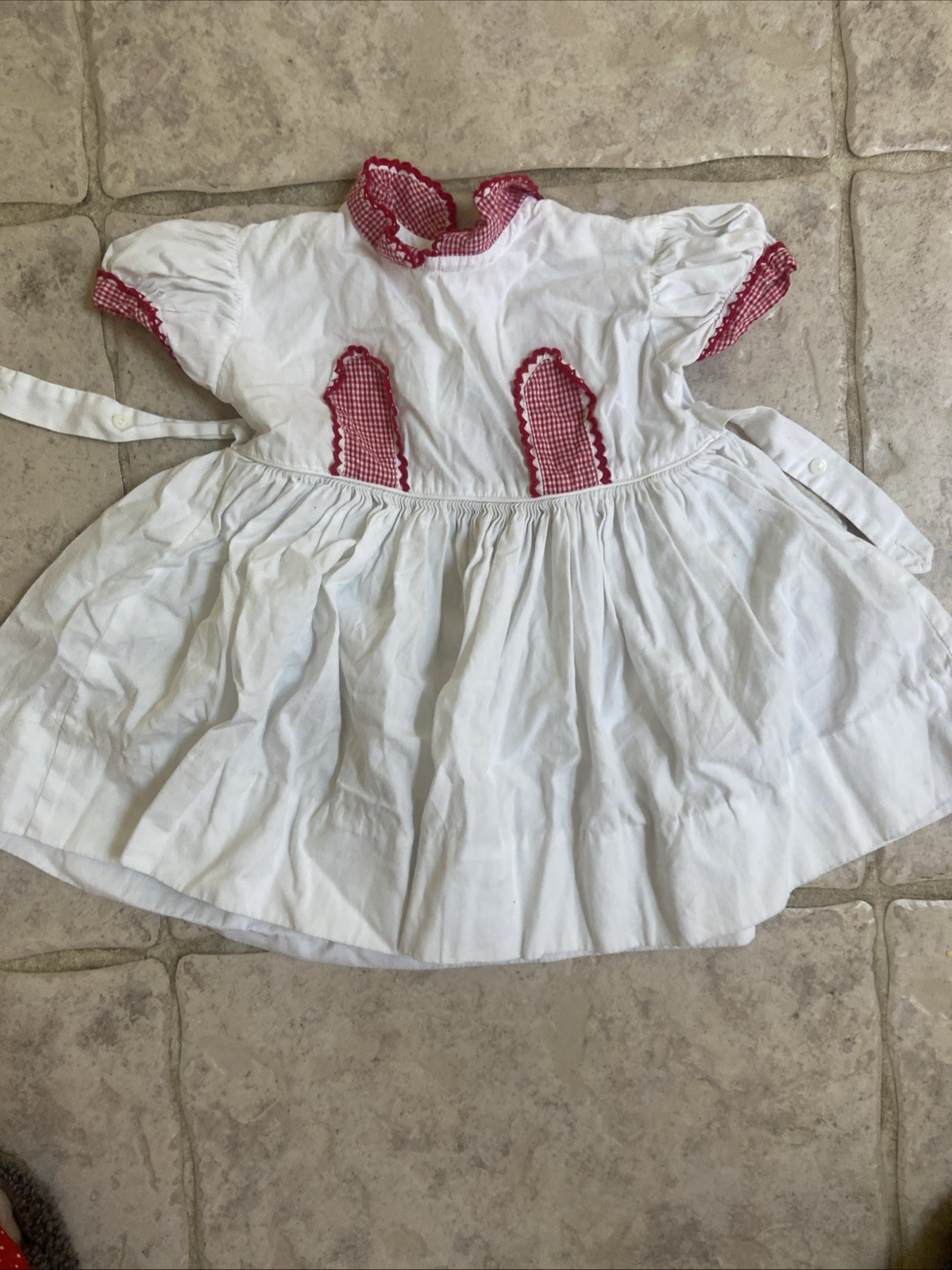2 Vintage Red White Lace Baby Dresses Prarie Cottagecore Girl 12-18 Months