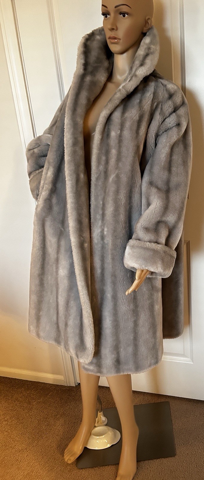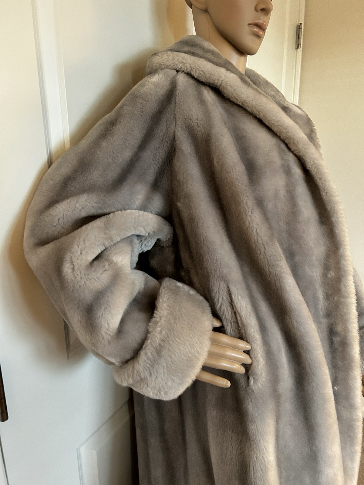 как выглядит VINTAGE 60s Realistic Silver Faux Fox Fur Lined Coat Pockets Made In USA Large фото
