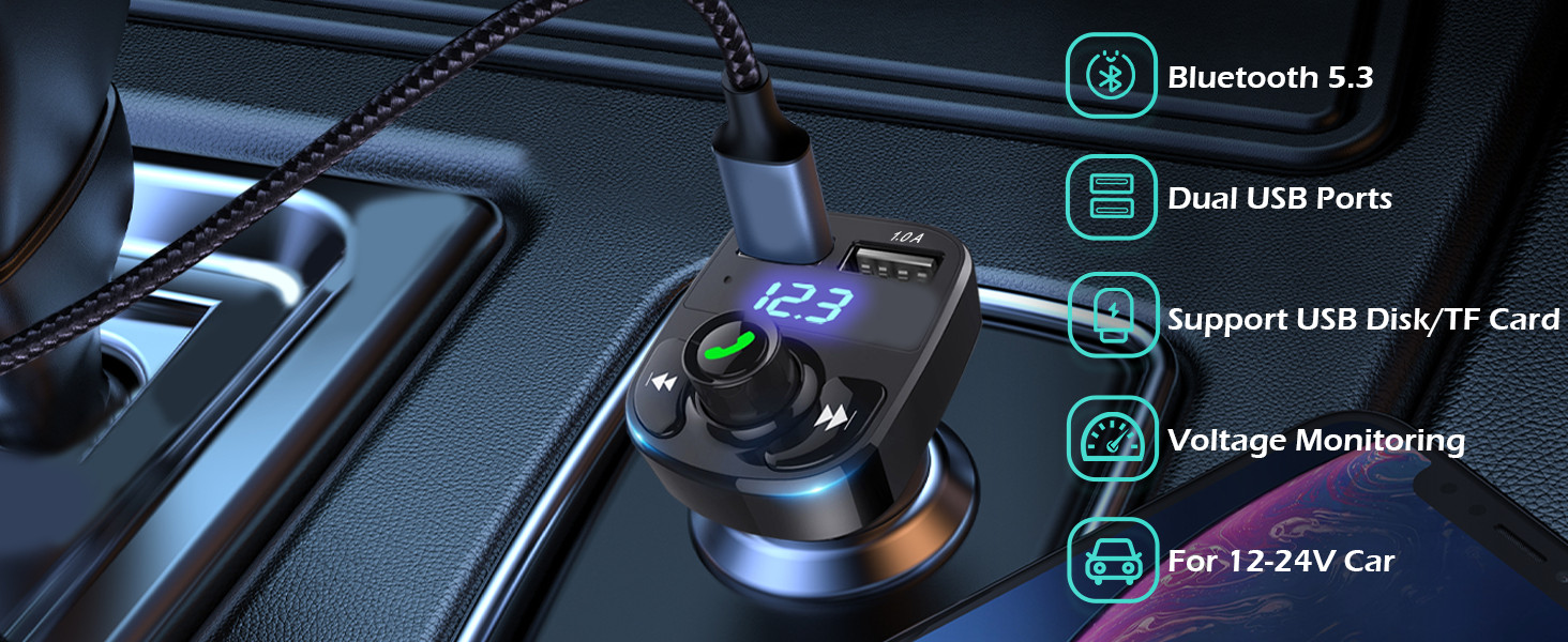 Bluetooth FM Transmitter Car Charger Handsfree Call MP3 Adapter Dual USB