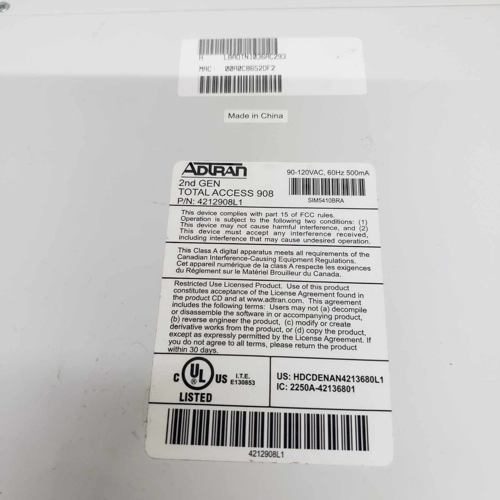 Adtran Total Access 908 2nd Gen Integrated Services Router