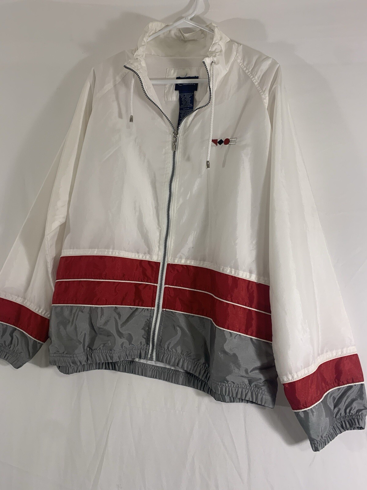Vtg Womens Catalina Windbreaker Large White Embroidered Grandma Track Walking