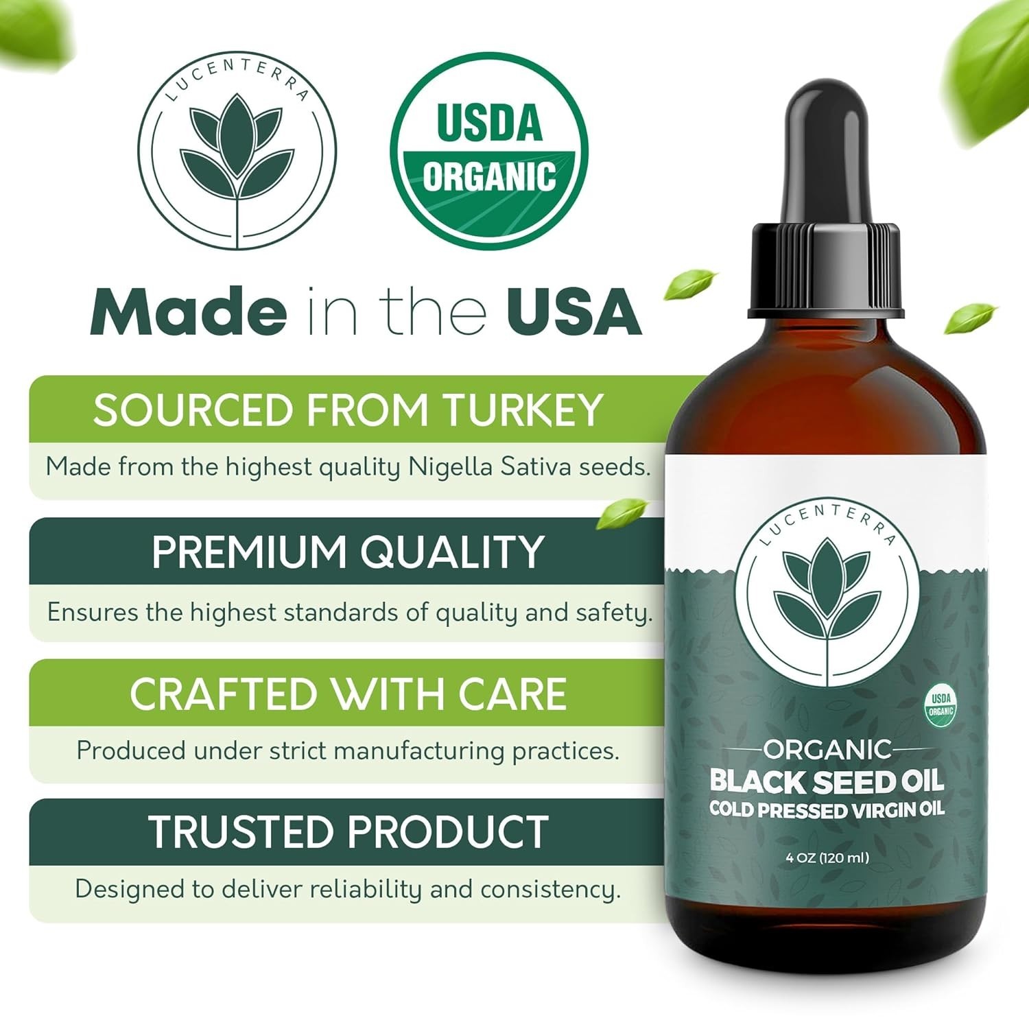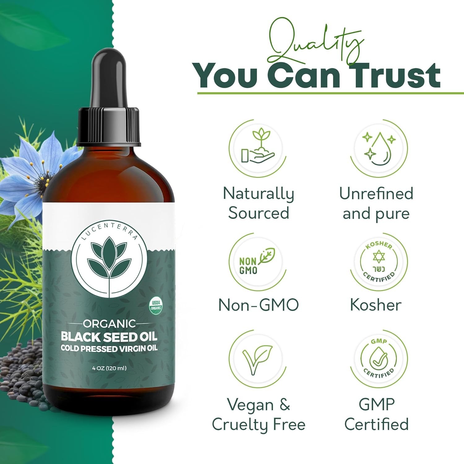Organic Black Seed Oil 4oz 100 Pure Cold Pressed Nigella Sativa USDA Certified
