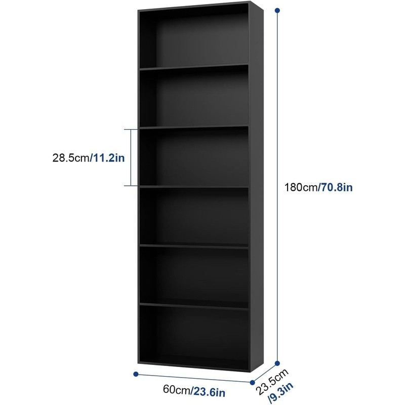 6-Tier Bookshelf Engineered Wood Storage Organizer Space Saving Multi-Use