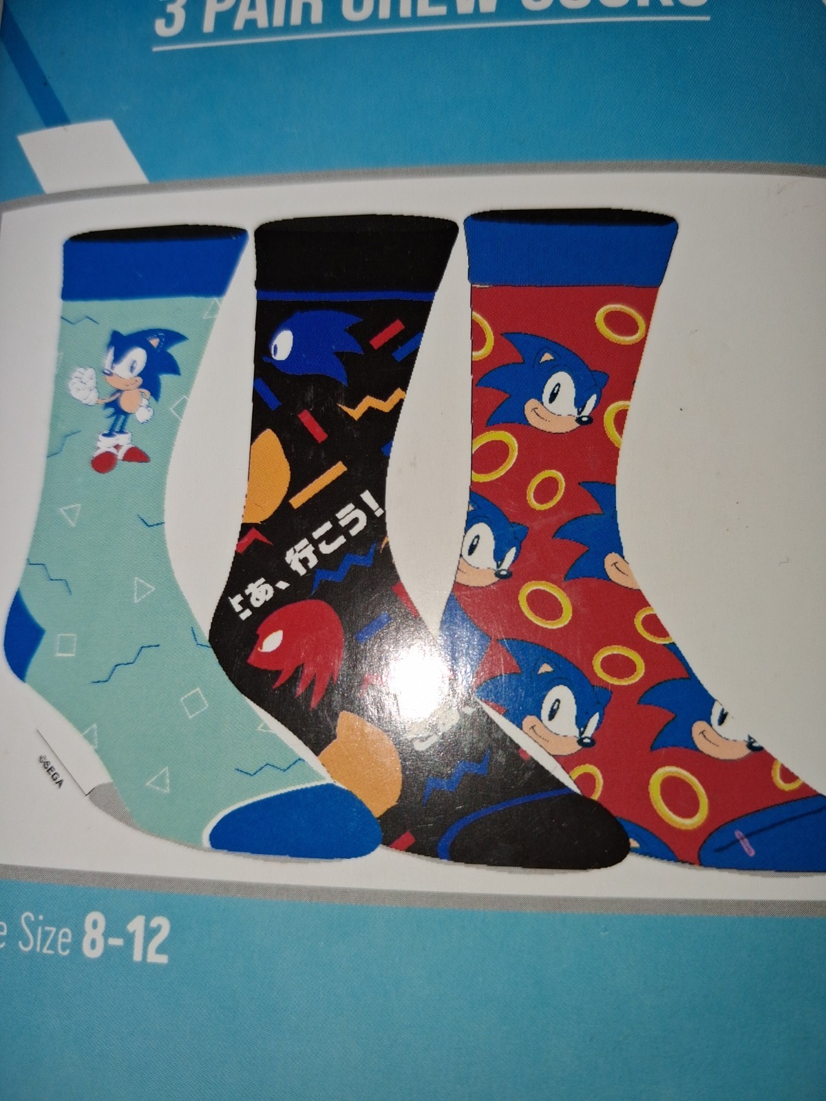 Sonic The Hedgehog Crew Socks - 3 Pair Pack - Men's Shoe Size 8 to 12, BRAND NEW