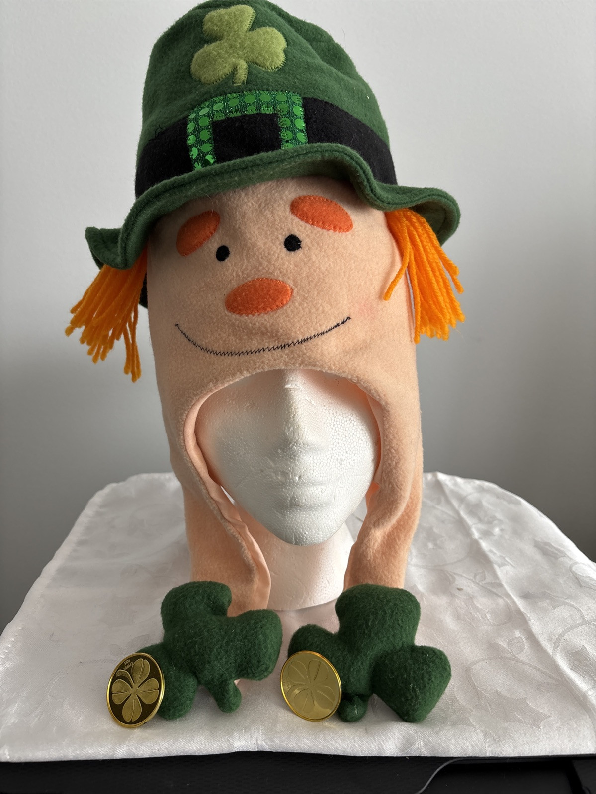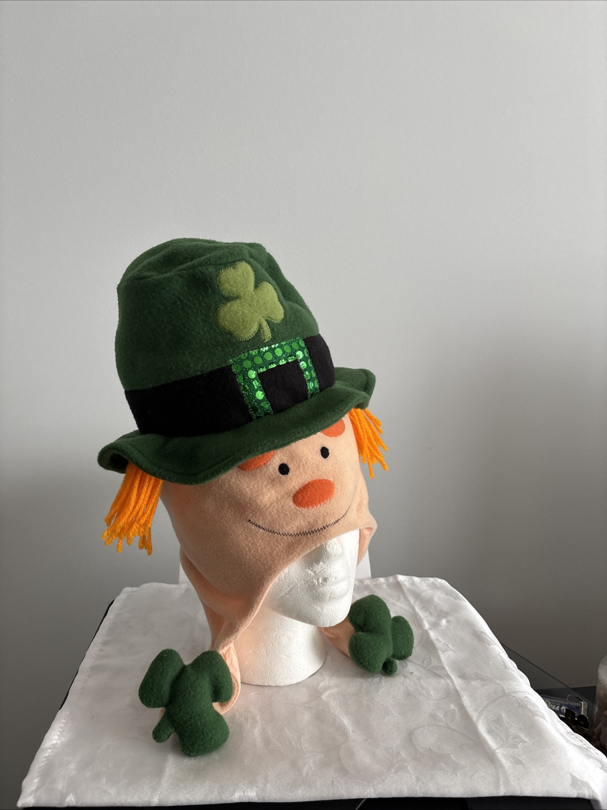 St. Patty Day Hat Whimsical Paddy s Day w/Shamrocks on Ties Preowned Very Good