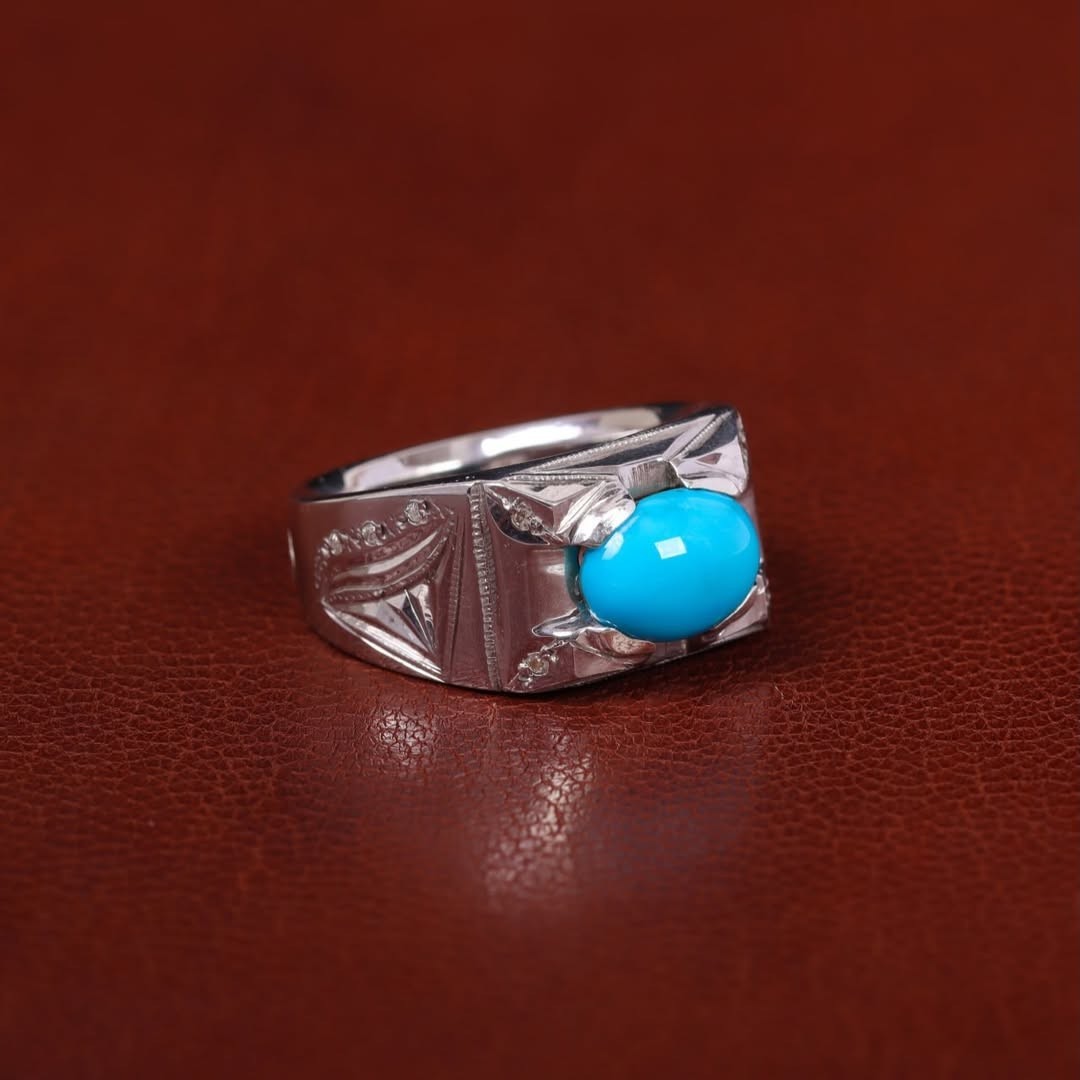 как выглядит Natural Real Nishapuri Feroza Turquoise Ring for men in 925 silver фото