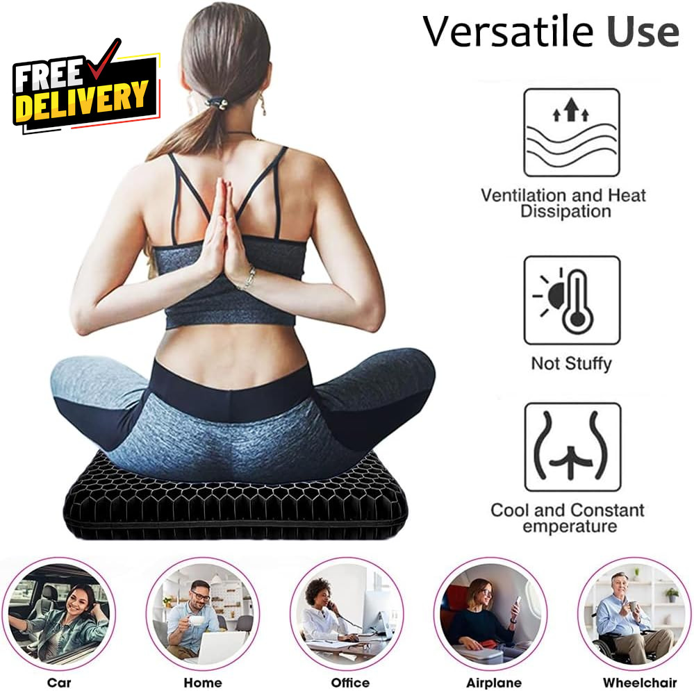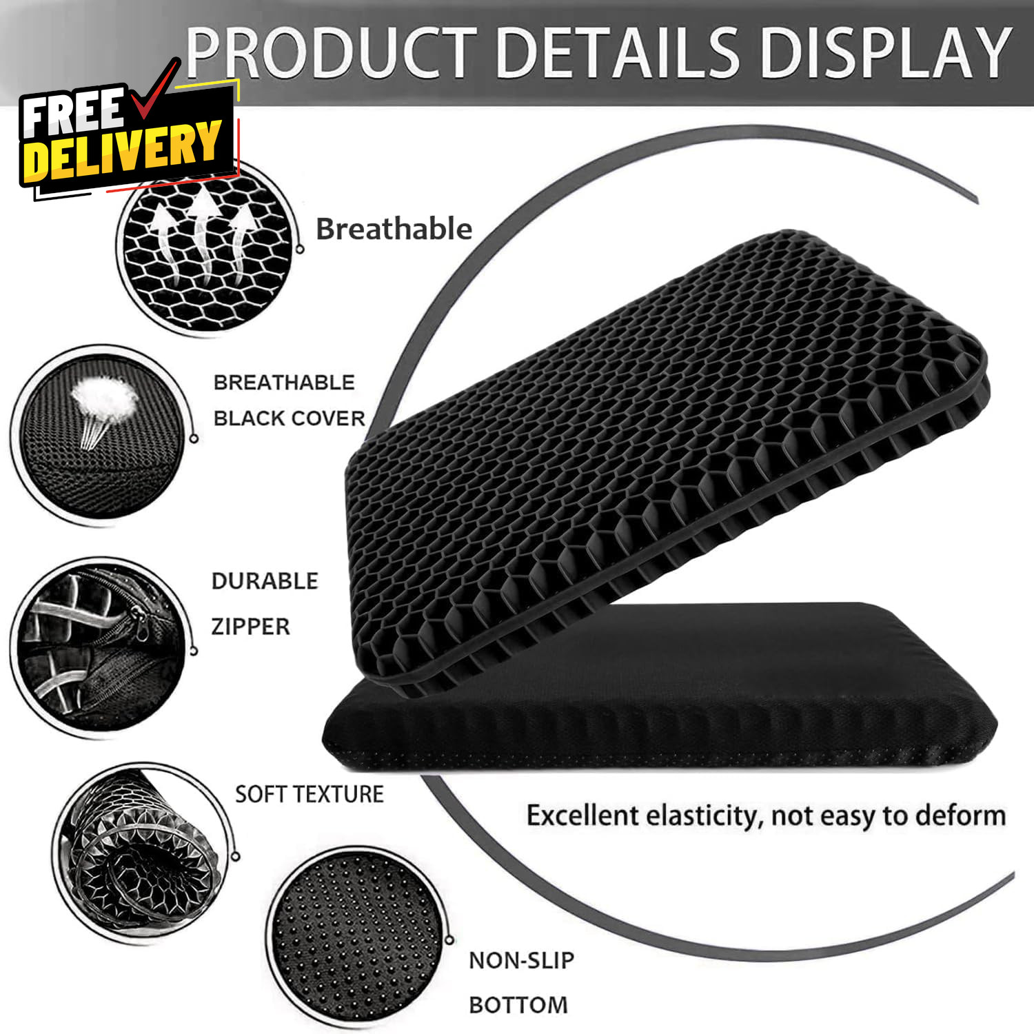 Gel Seat Cushion Extra Thick for Office Wheelchair Car Chair Long Sitting Black