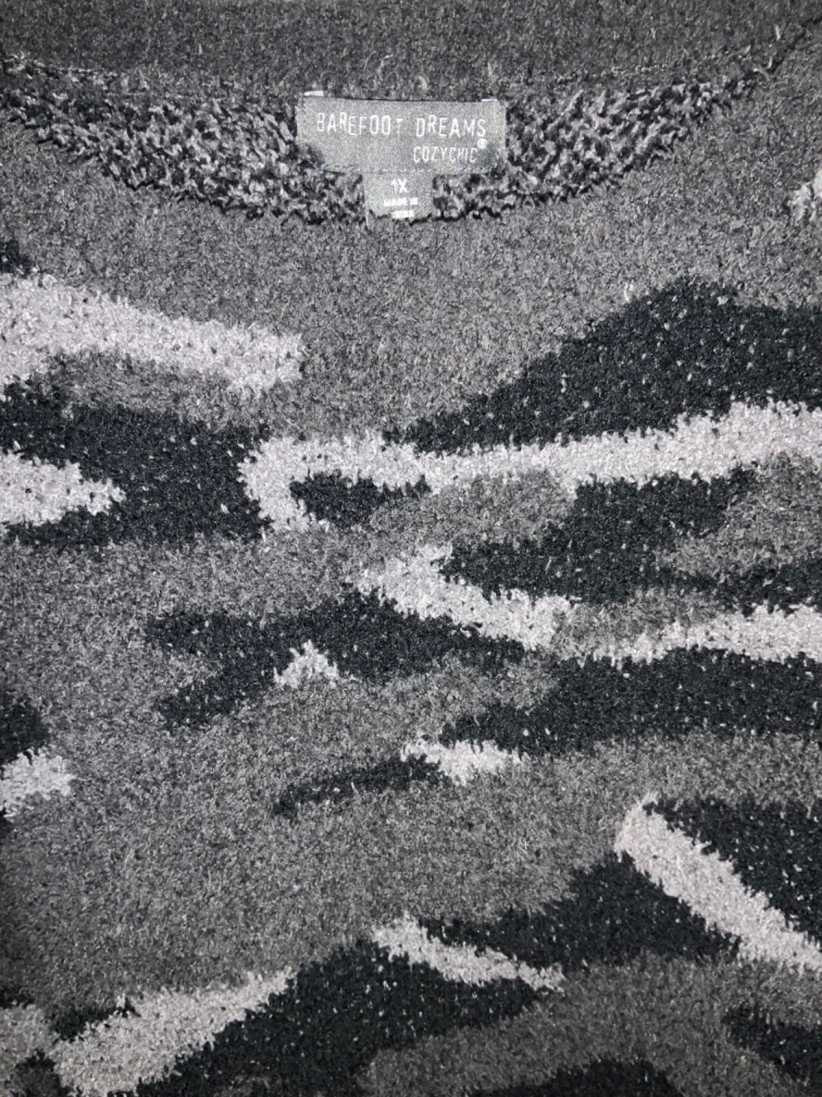 как выглядит Barefoot Dreams Cozy Chic Dark Gray Black Camo Seaside Sweater Size 1X EUC фото