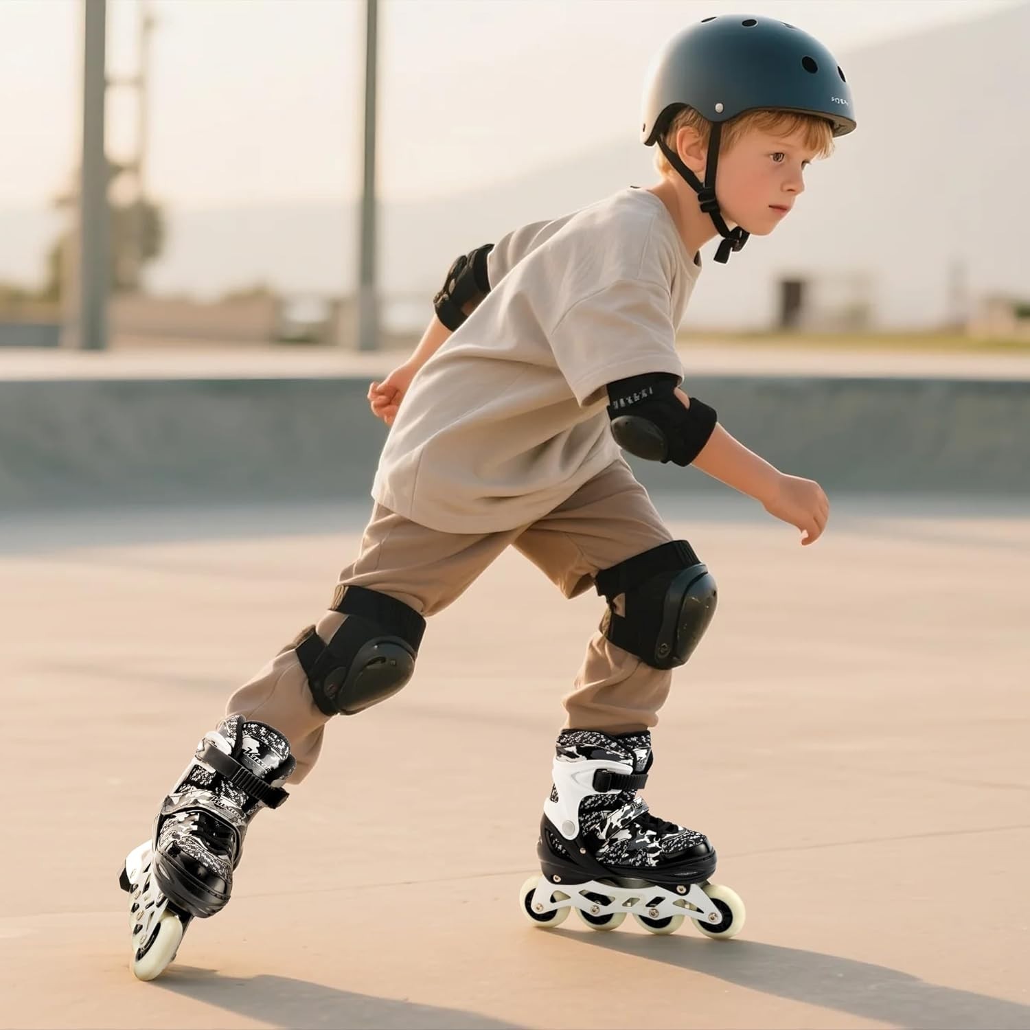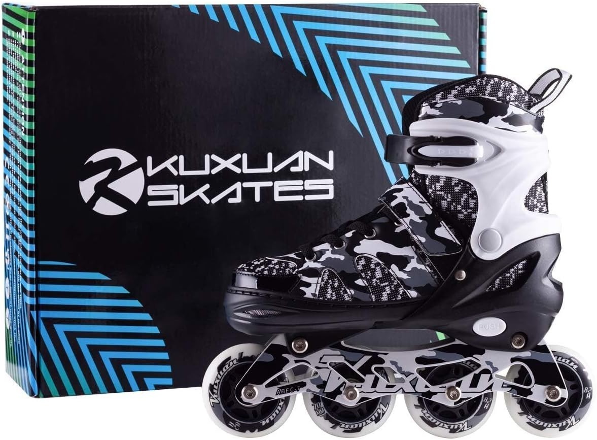 Boys Adjustable Inline Skates with Light-Up Wheels - Fit Kids 13-3 US