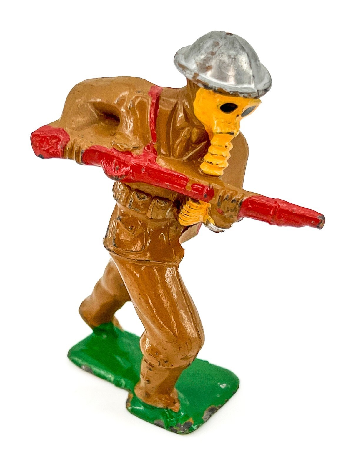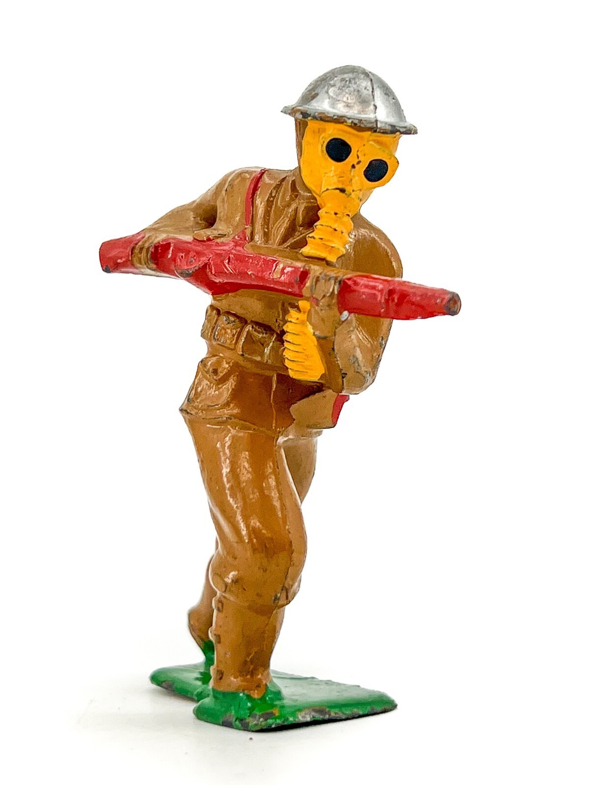 749 Barclay Manoil Wearing Gas Mask w/ Rifle Gun Soldier Dime Store Cast Scarce