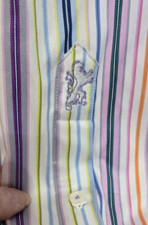 как выглядит Bugatchi Mens Shirt Purple Pink Orange Blue Green Stripes Classic Fit MED F400 фото