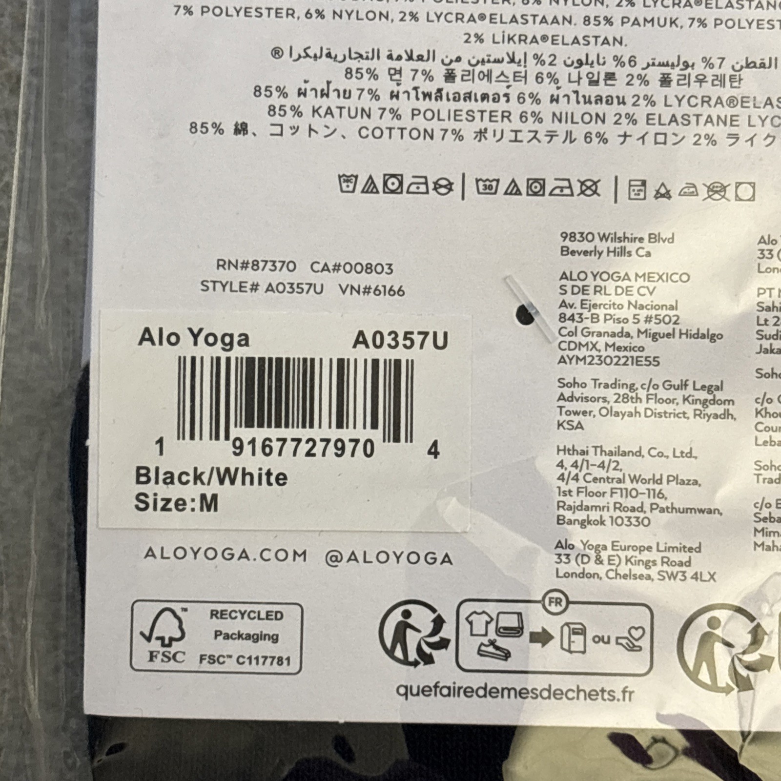 ALO Yoga Unisex Throwback Sock Style A0357U in Black/White