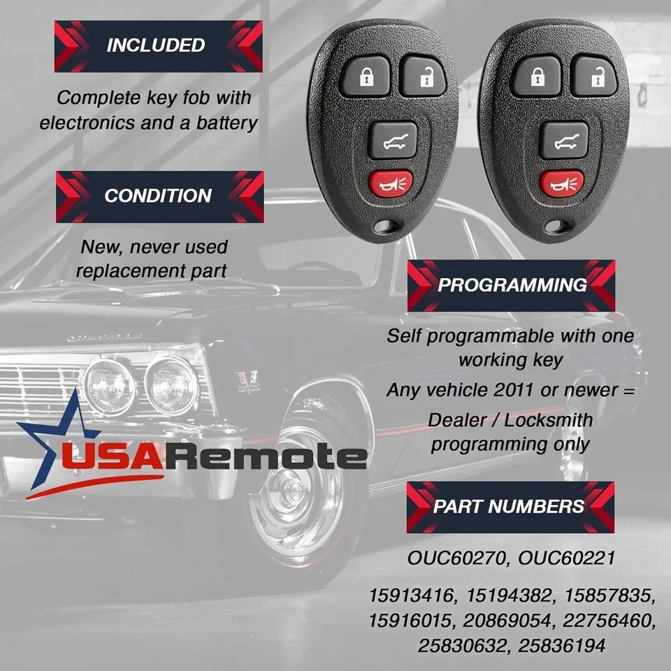 Key Fob Keyless Entry Remote with Ignition Key fits Suburban Tahoe Traverse