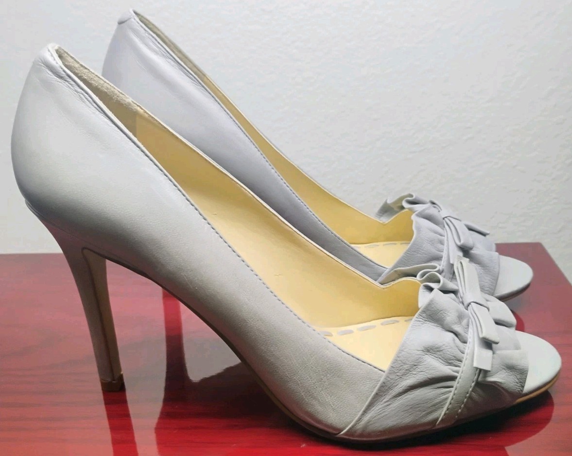 Enzo Angiolini Eamielee Light Gray High Heel Open Toe Shoe Leather Women s 8 M
