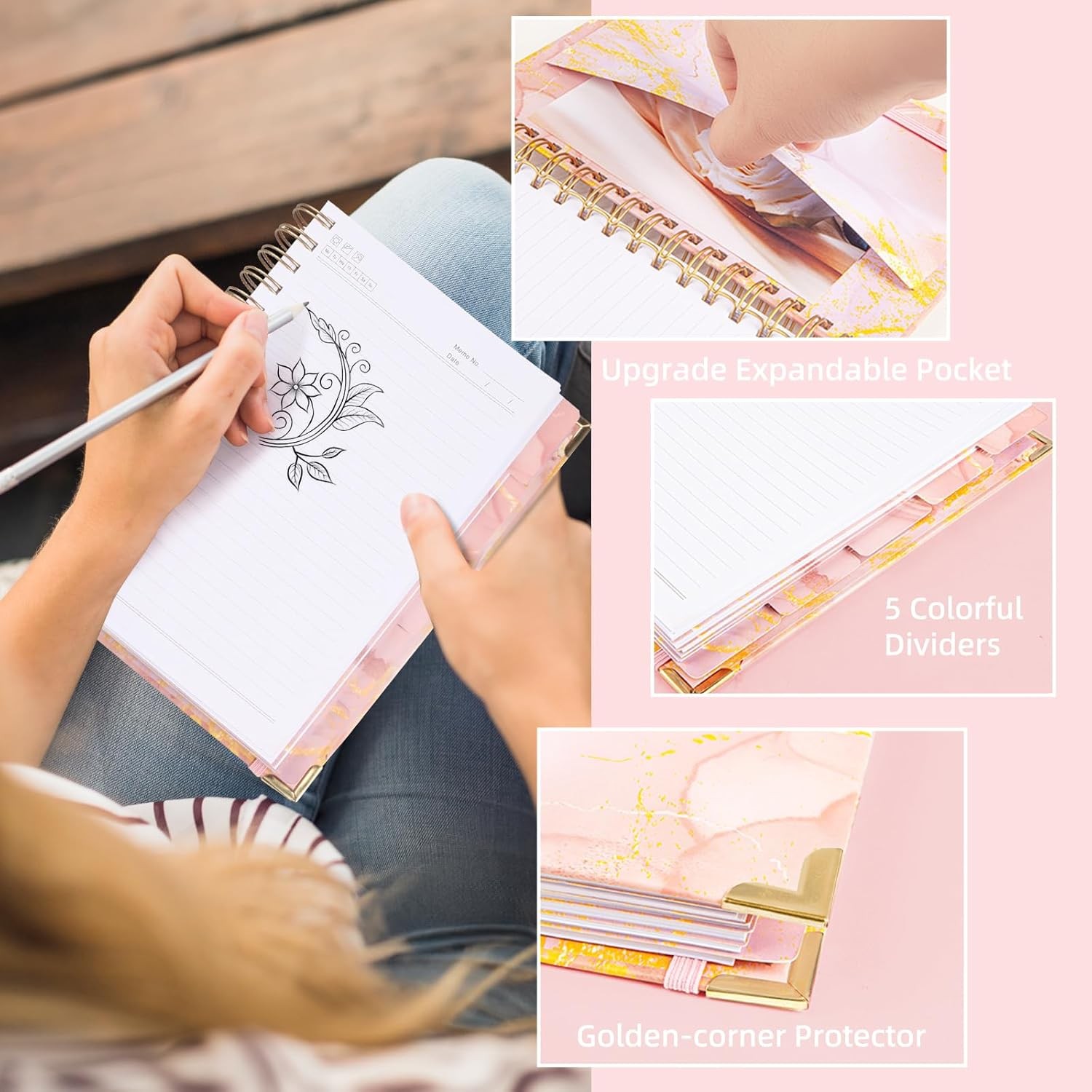 5 Subject A5 Spiral Notebook College Ruled 240 Pages Lined Journal Pink Marble