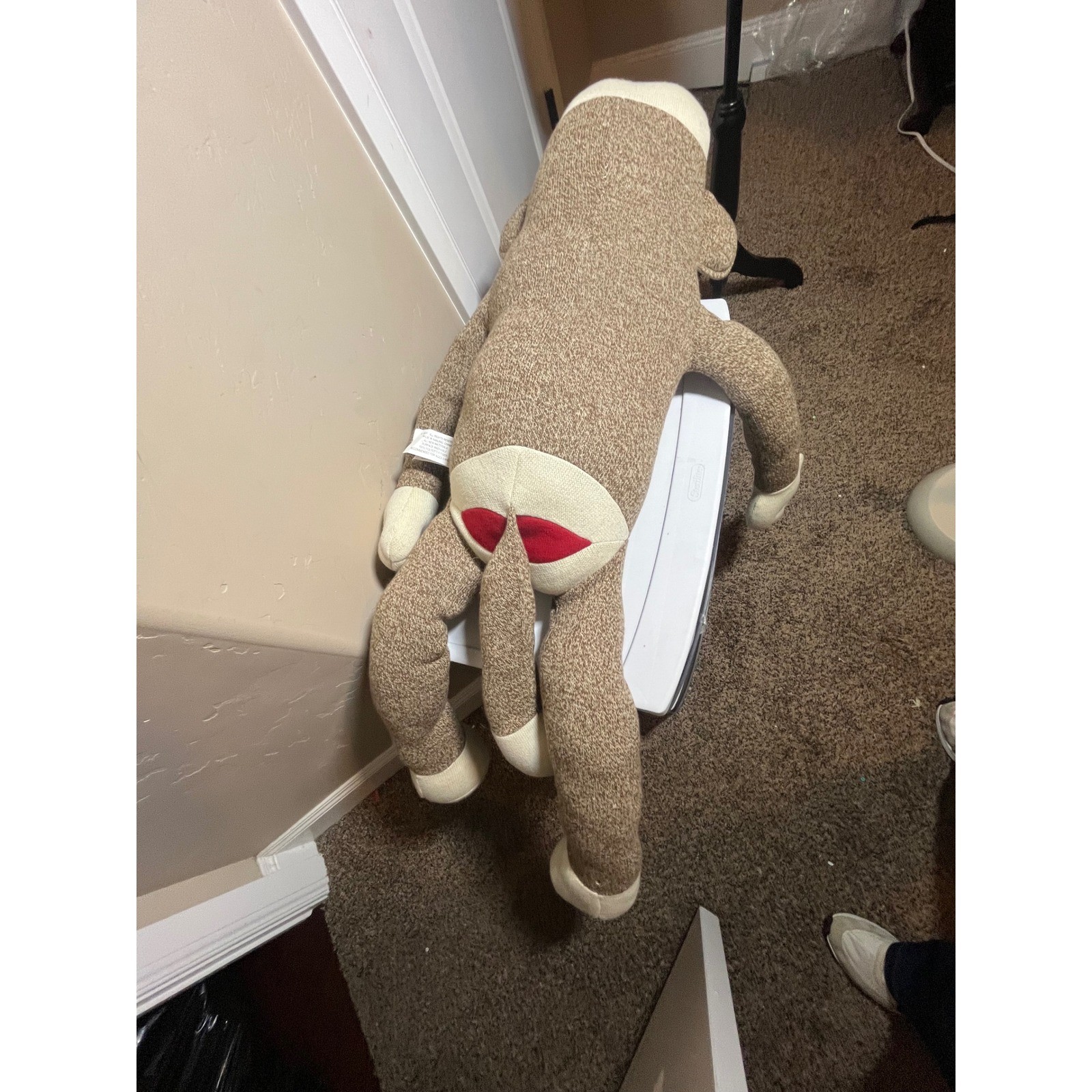 как выглядит Maxx Sock Monkey Plush Large Stuffed Animal Kids Toy Brown White Red фото