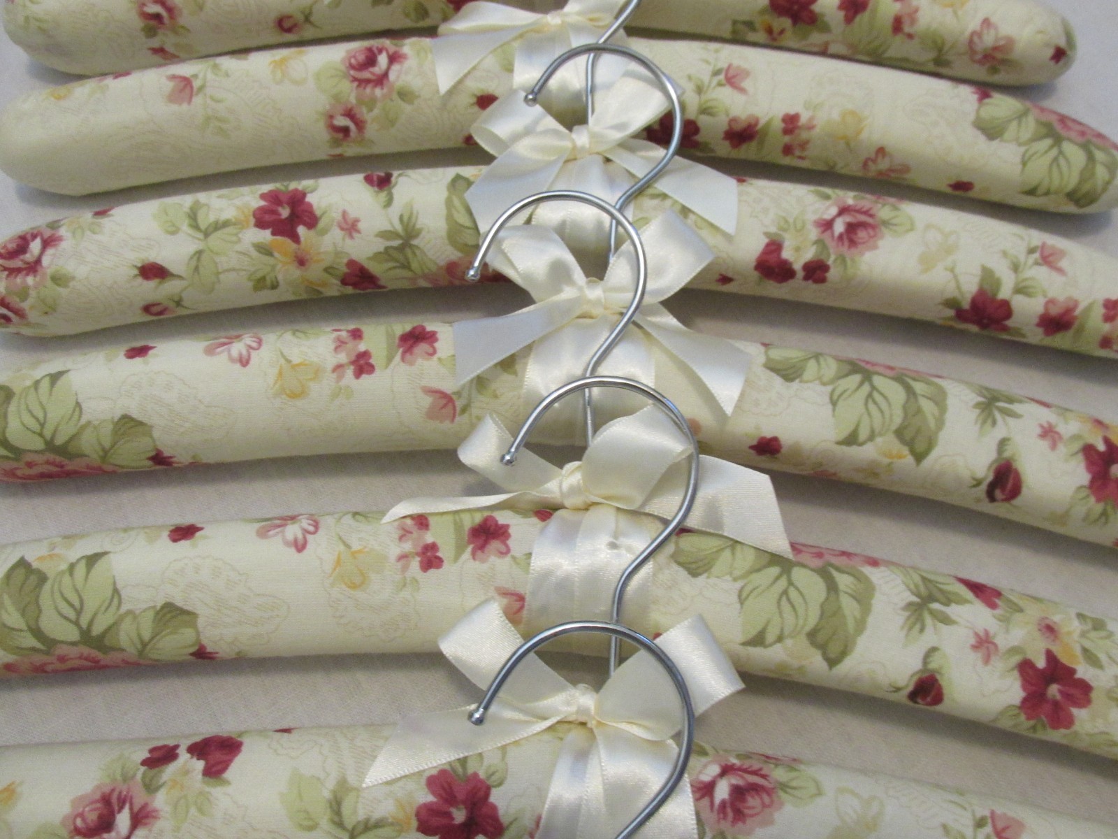 10 Satin Covered Softly Padded Sweater Clothes Hangers Rose Floral w/ Bow NEW