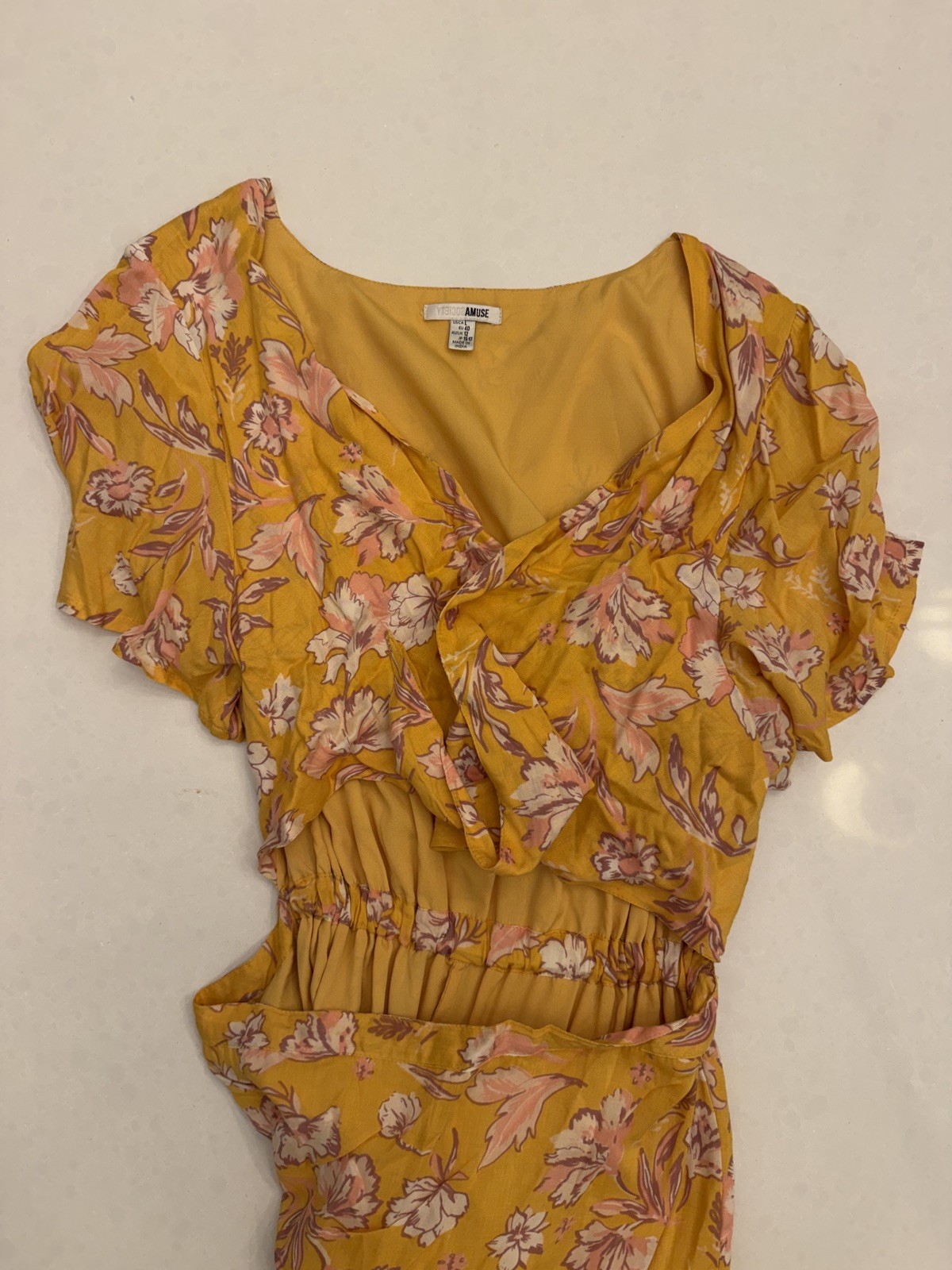 как выглядит AMUSE Society Orange Floral Maxi Dress Tie front Size Large фото