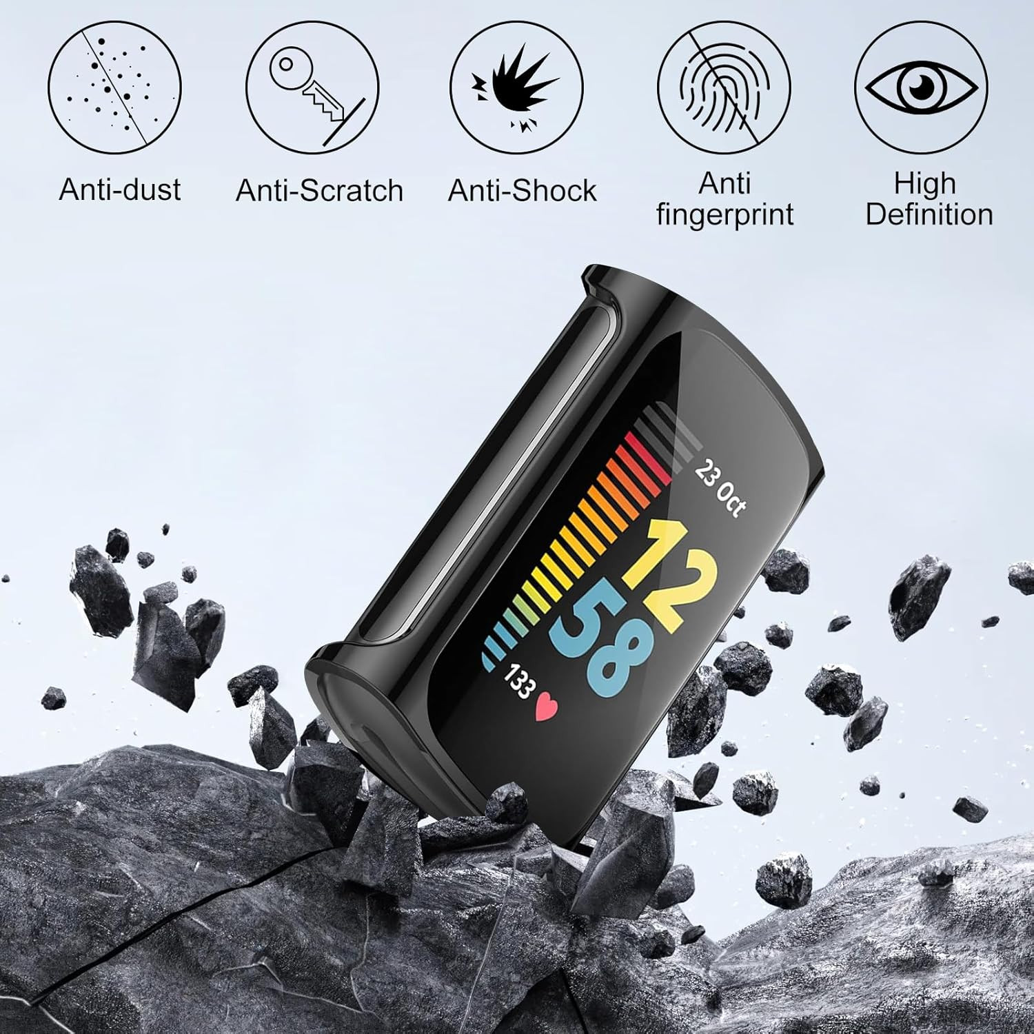 6 Pack for Fitbit Charge 6/5 Screen Protector Case, Ultra-Thin Soft TPU Bumper F