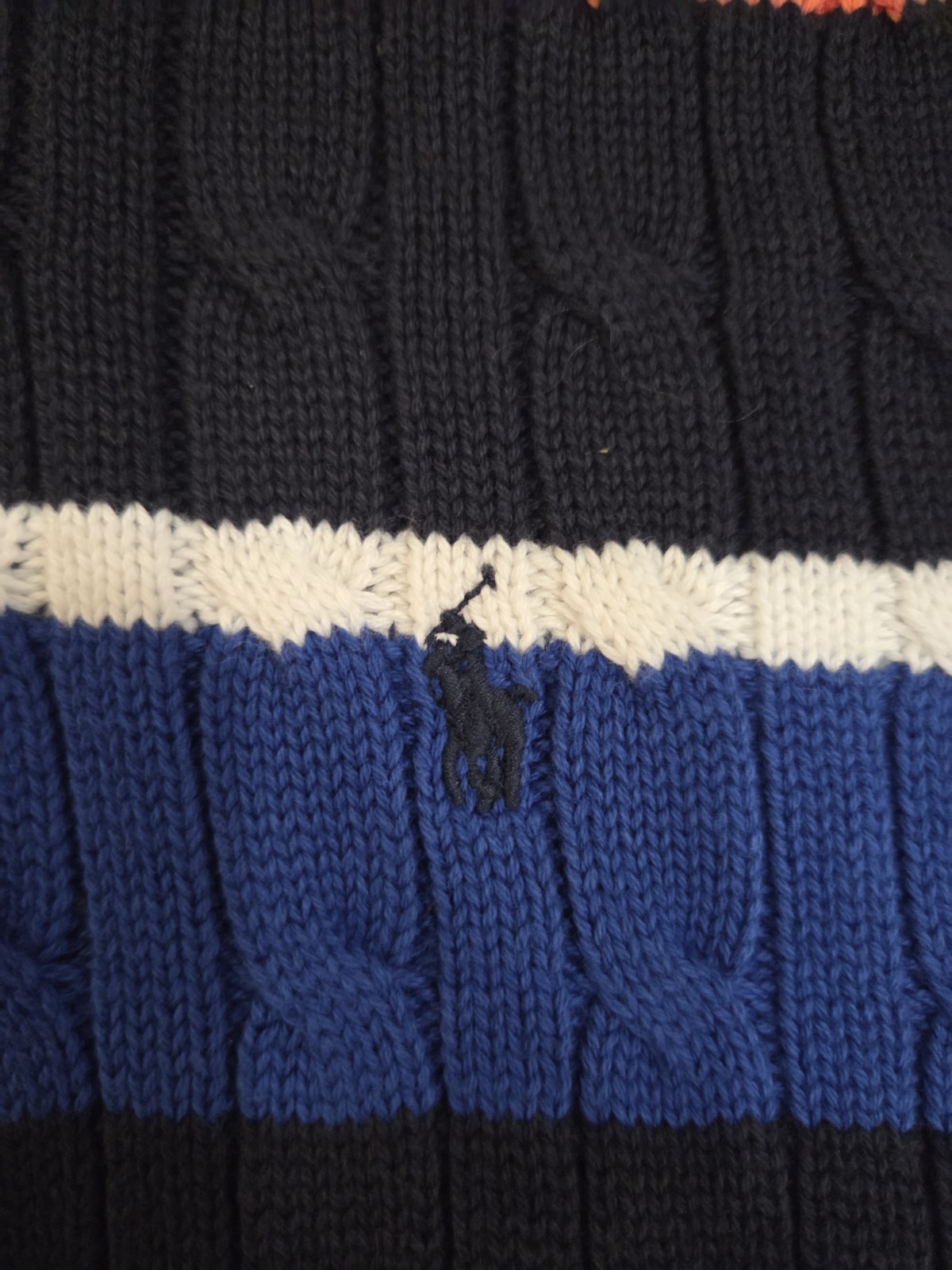 как выглядит Polo Ralph Lauren Boys Multicolor Striped Cable Knit 3/4 Zip Up Sweater L 14-16 фото