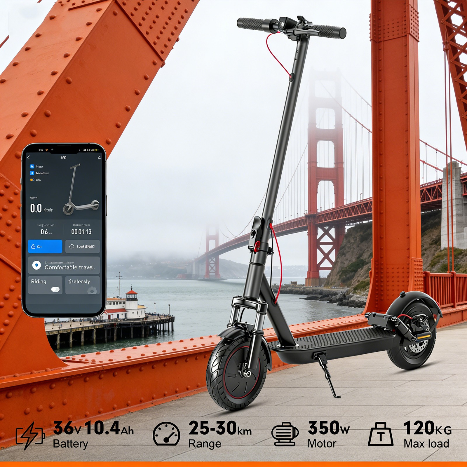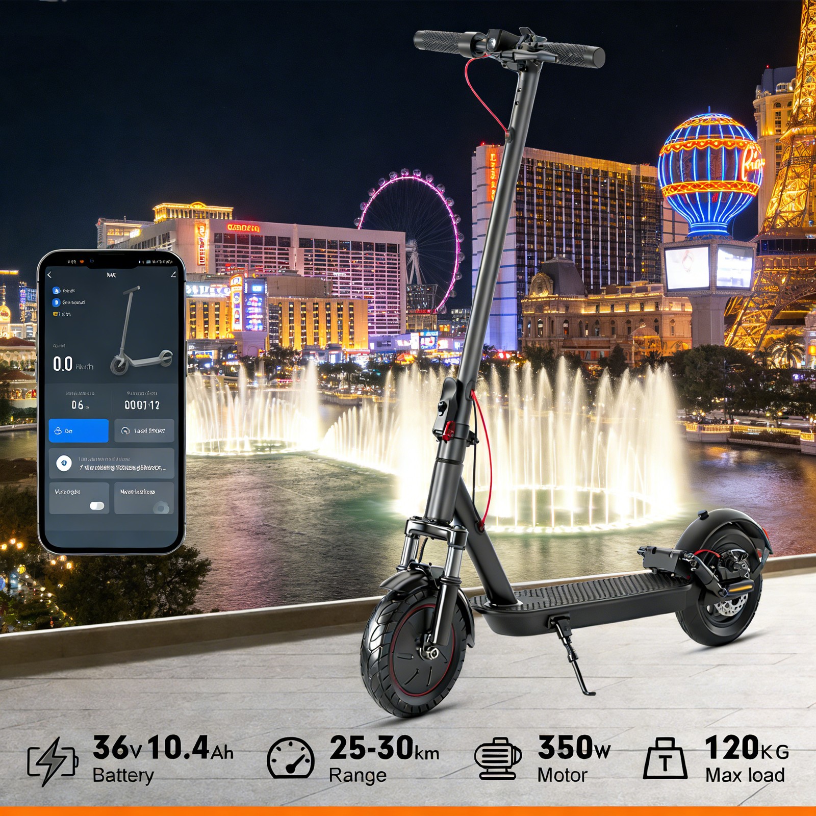 Smart 25MPH Dual-Shock E-Scooter w/ APP - Adult Xmas Birthday Win 10, 10.4AH