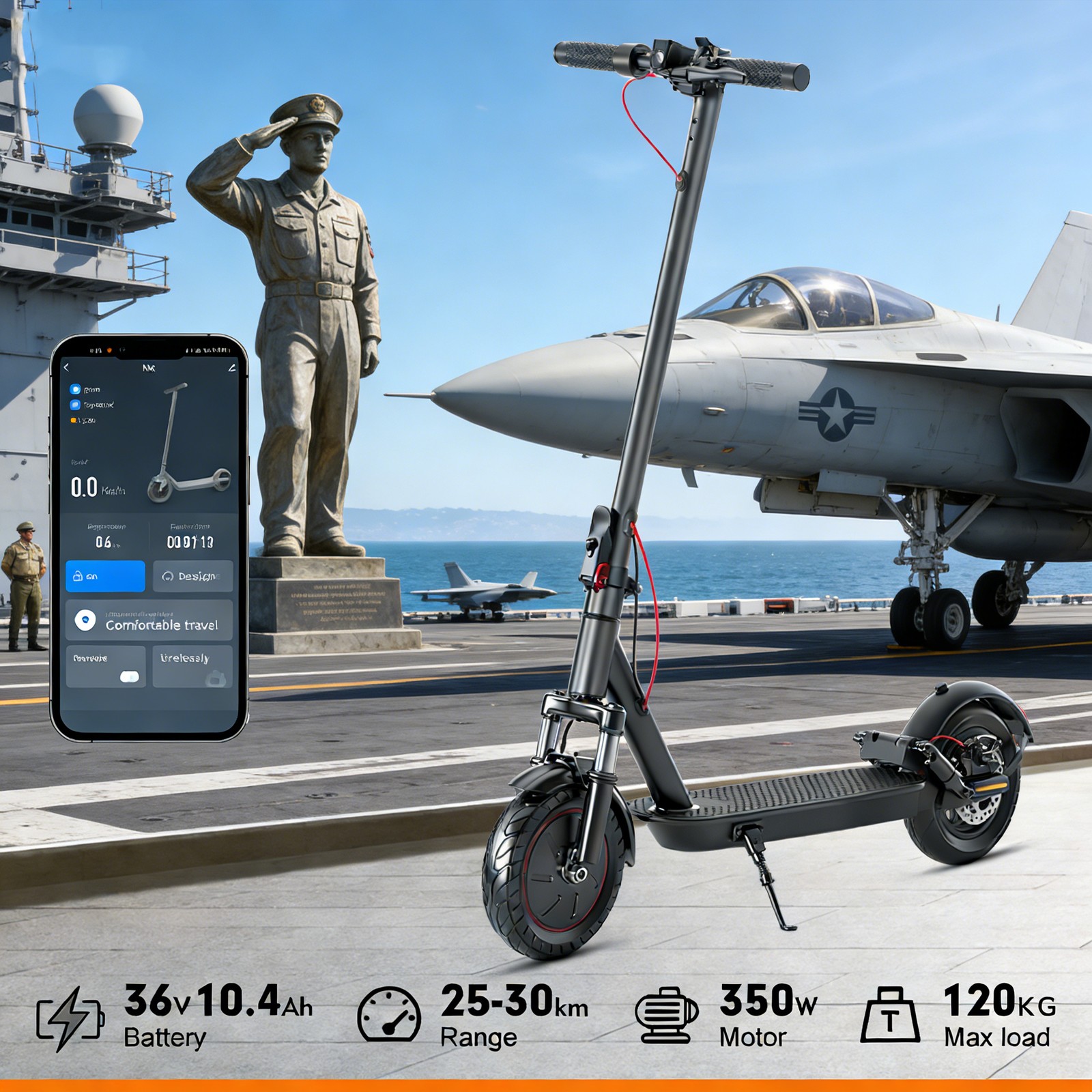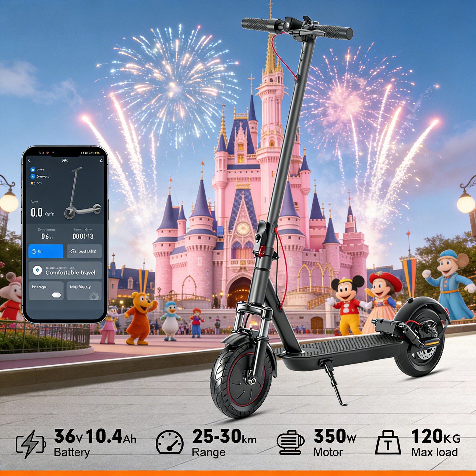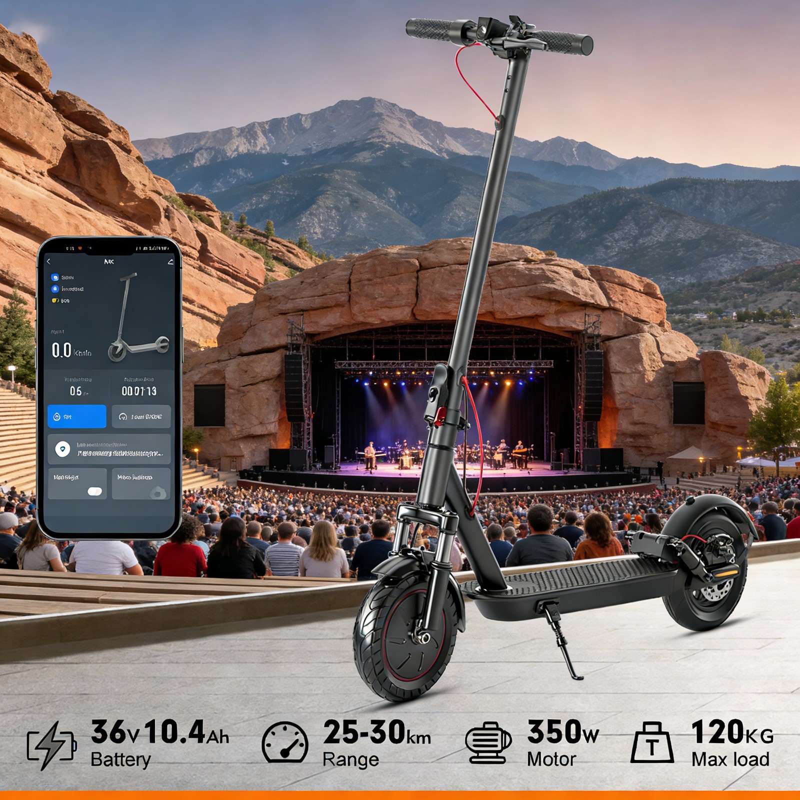 APP-Linked 25MPH Dual-Shock E-Scooter-Adult Xmas/Birthday Super Gift 10,10.4AH