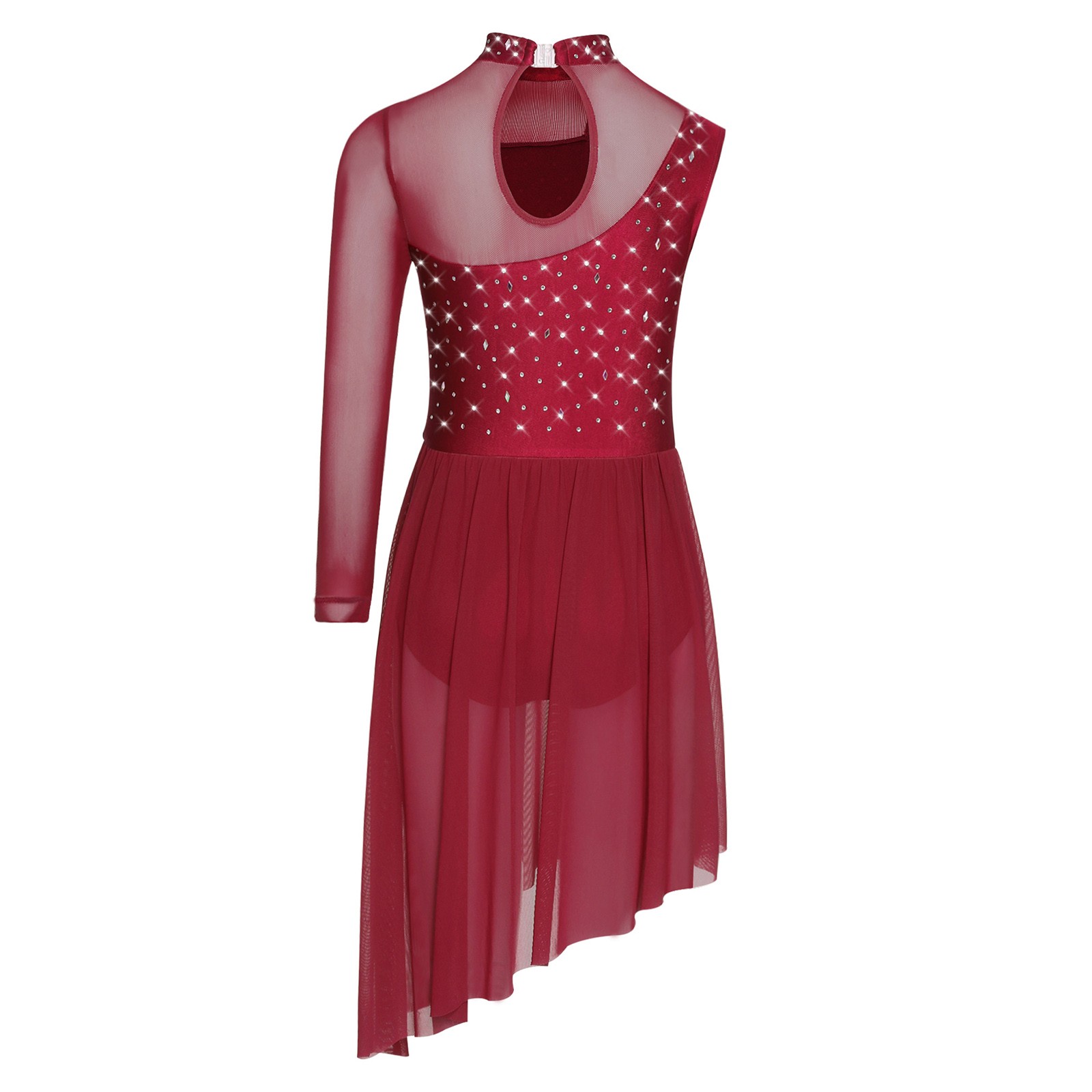 US Girls Modern Lyrical Gymnastics Skirted Leotard Sparkly Figure Skating Dress
