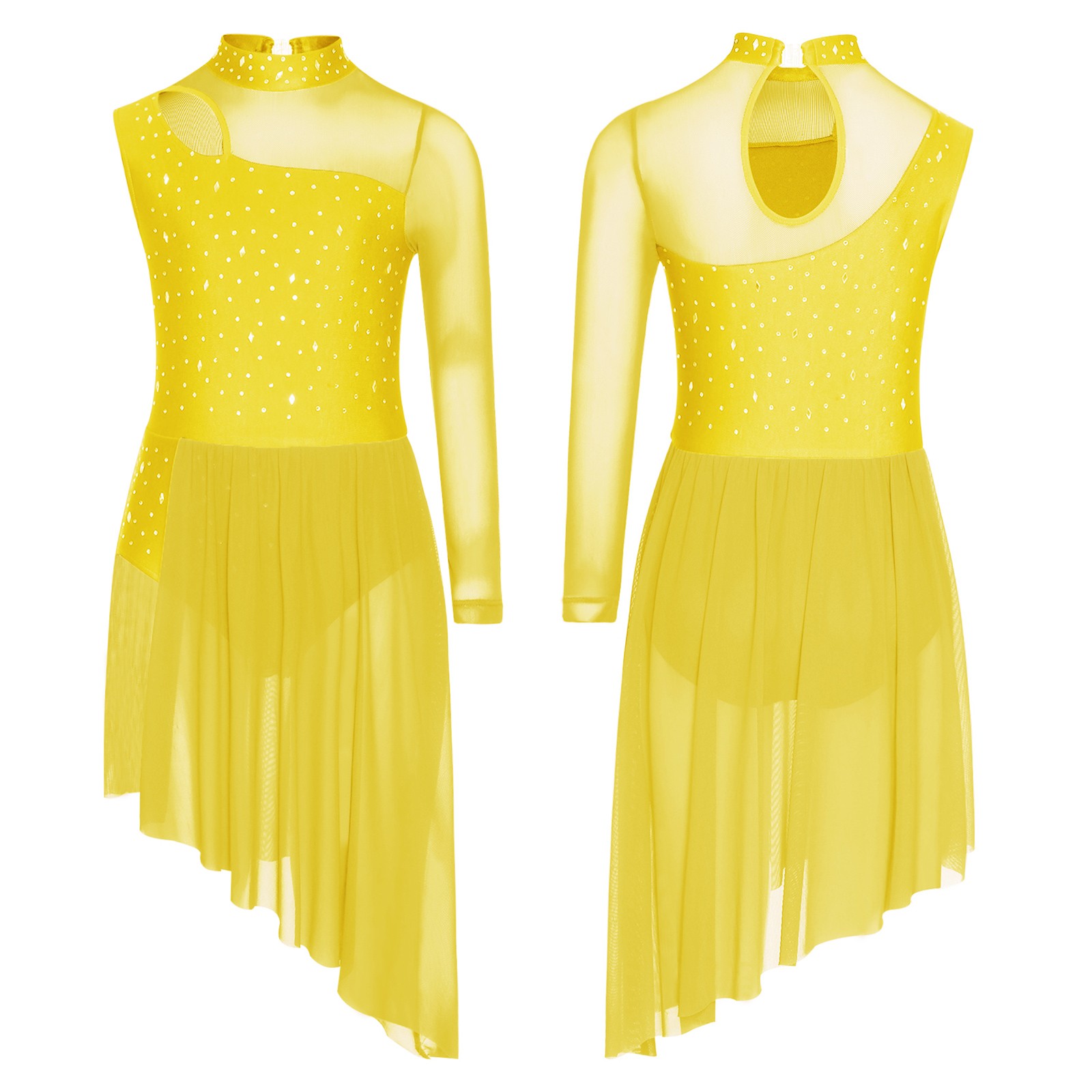 US Girls Modern Lyrical Gymnastics Skirted Leotard Sparkly Figure Skating Dress