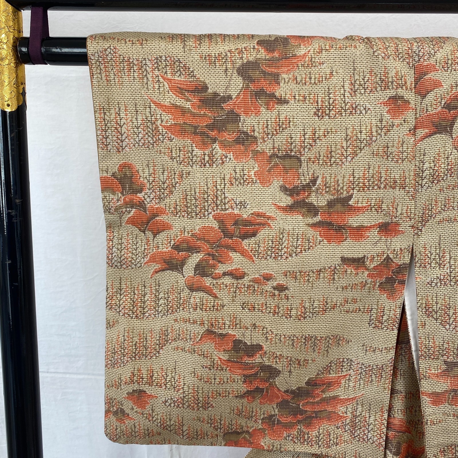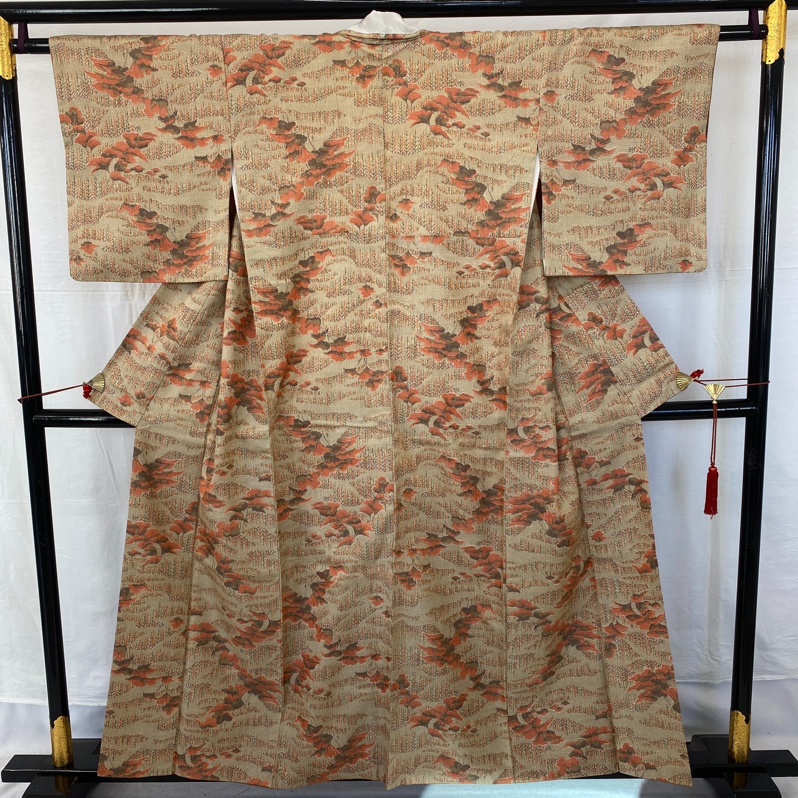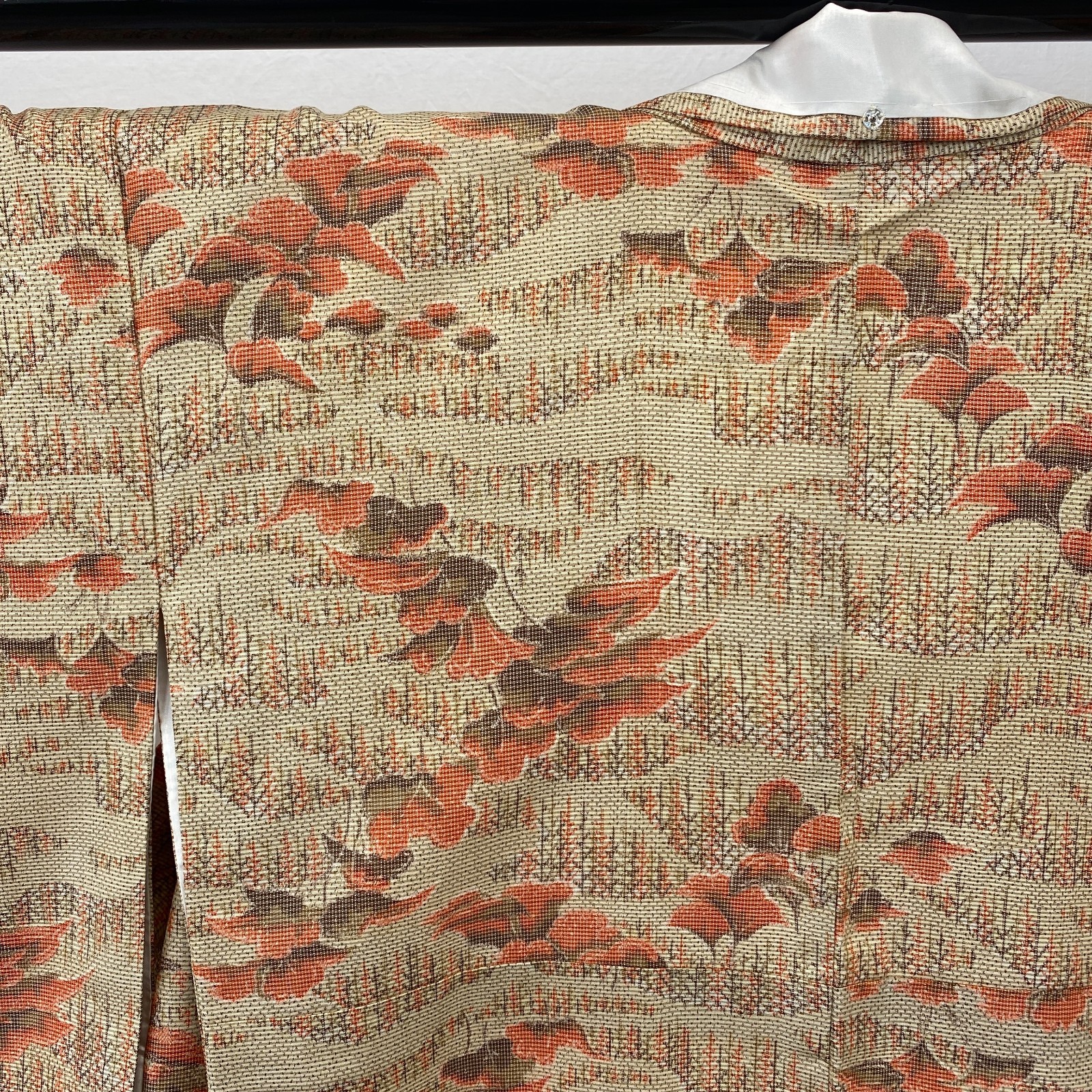 Japanese Vintage Kimono Silk Beige Tumugi Traditional Authentic Length 61 in