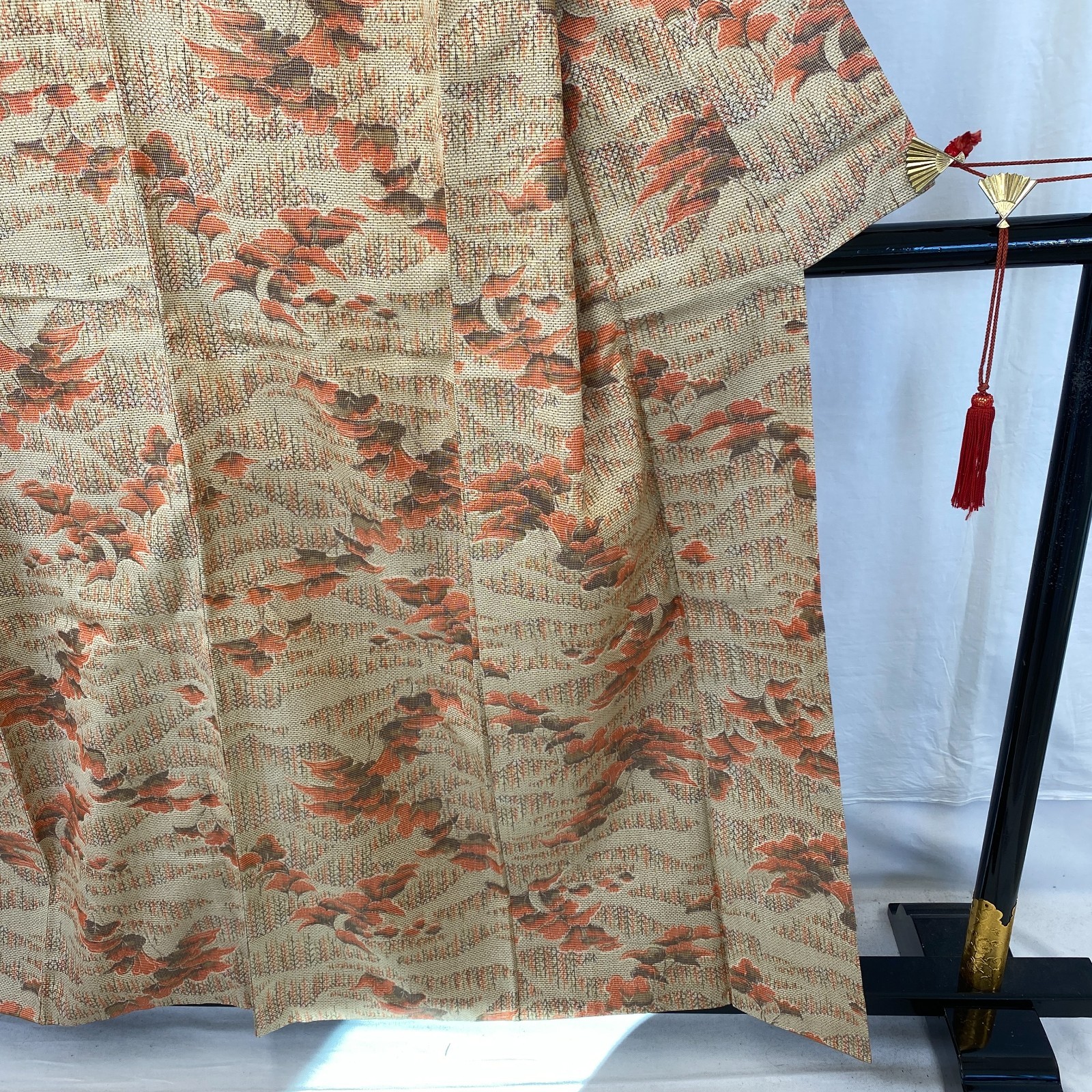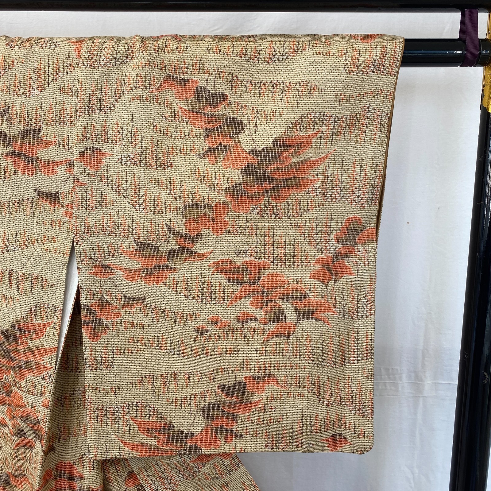 как выглядит Japanese Vintage Kimono Silk Beige Tumugi Traditional Authentic Length 61 in фото