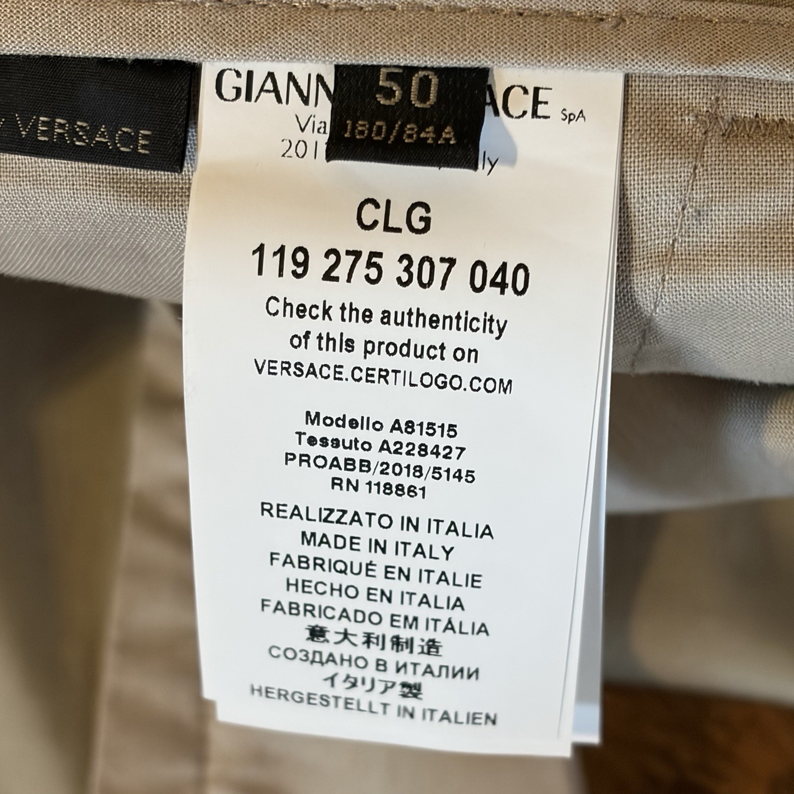 как выглядит Versace Men s Tan Dress Slacks 36 Waist 30.5 Inseam NWT FLAW Logo Old Money фото