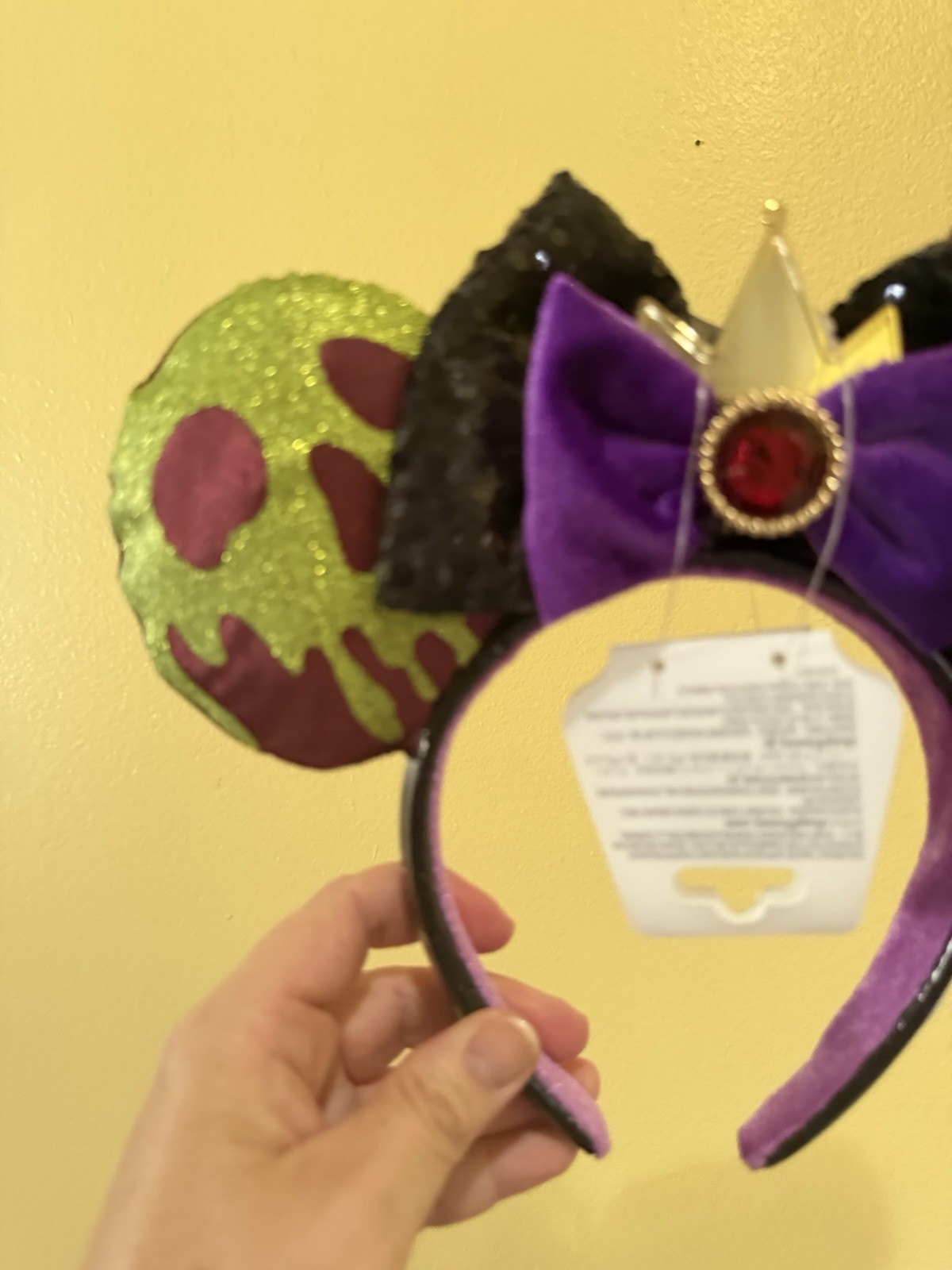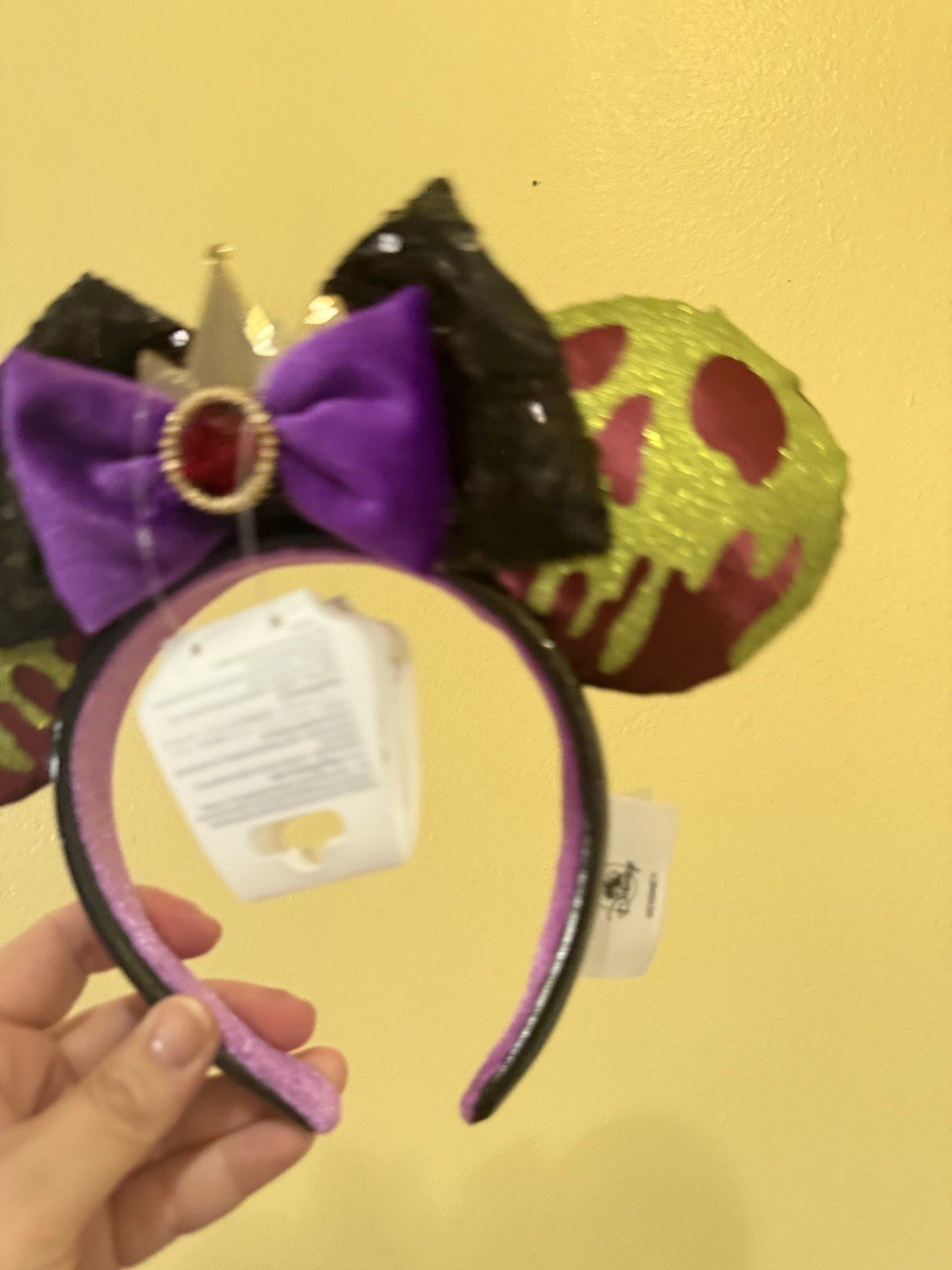 • Disney Parks 2026 Snow White Evil Queen Poison Apple Minnie Mouse Ears Headband
