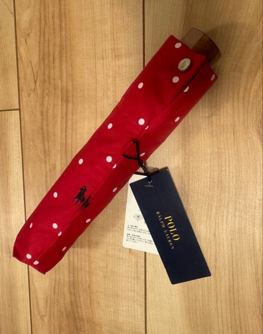 POLO Ralph Lauren Red Folding Umbrella All-Over Dot Carbon Fiber Frame 22 Rib