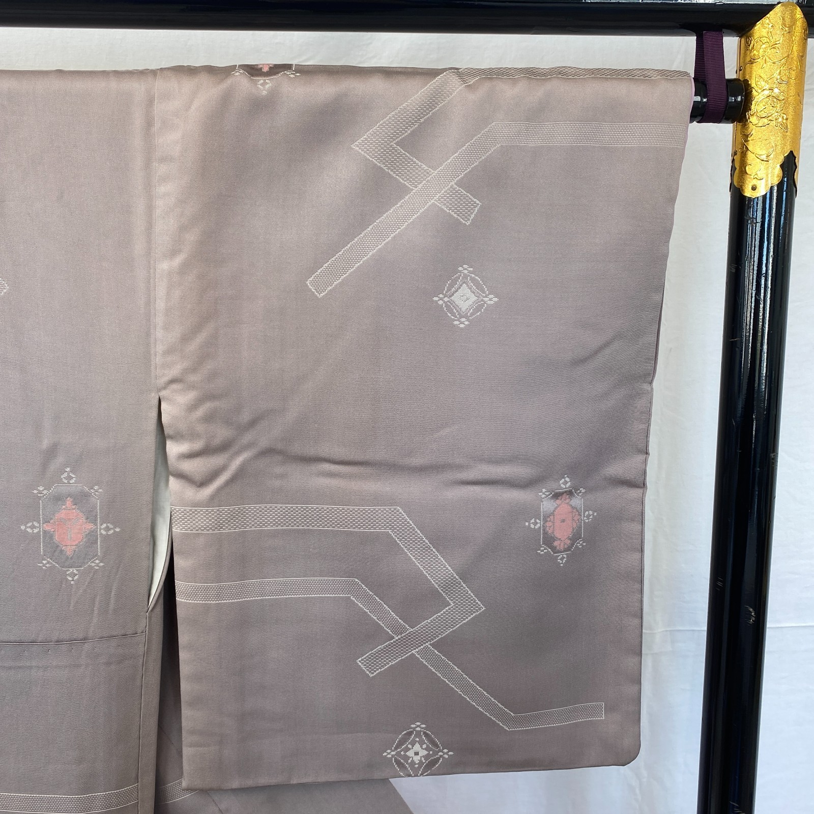 Japanese Vintage Kimono Silk Gray Komon Traditional Authentic Length 60 in