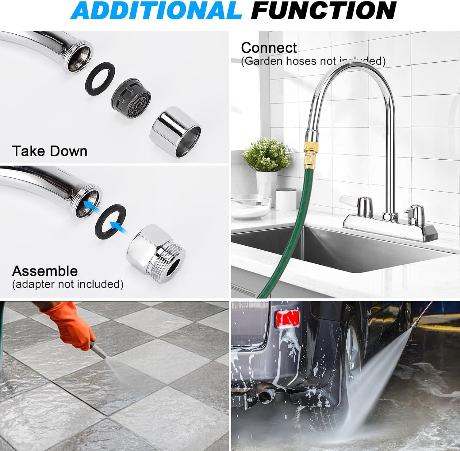 Chrome Polished with 7 Gooseneck Spout and 90 Rotatable Dual Lever Handles.
