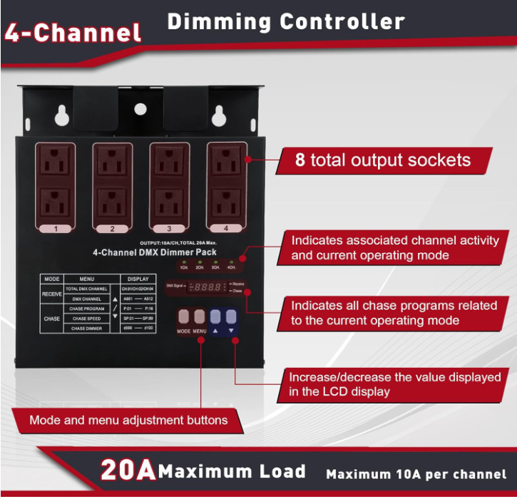 Dmx Dimmer Pack with Dmx 4-Channel Dmx512 Dimmer Pack Suitable for Stage Lighti