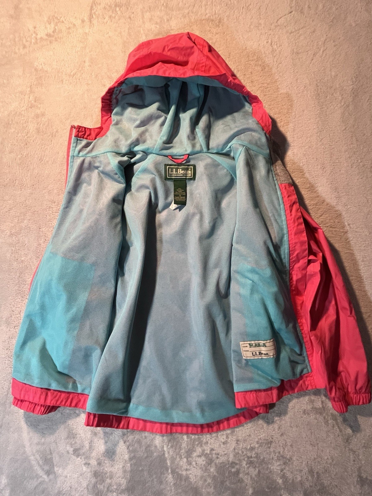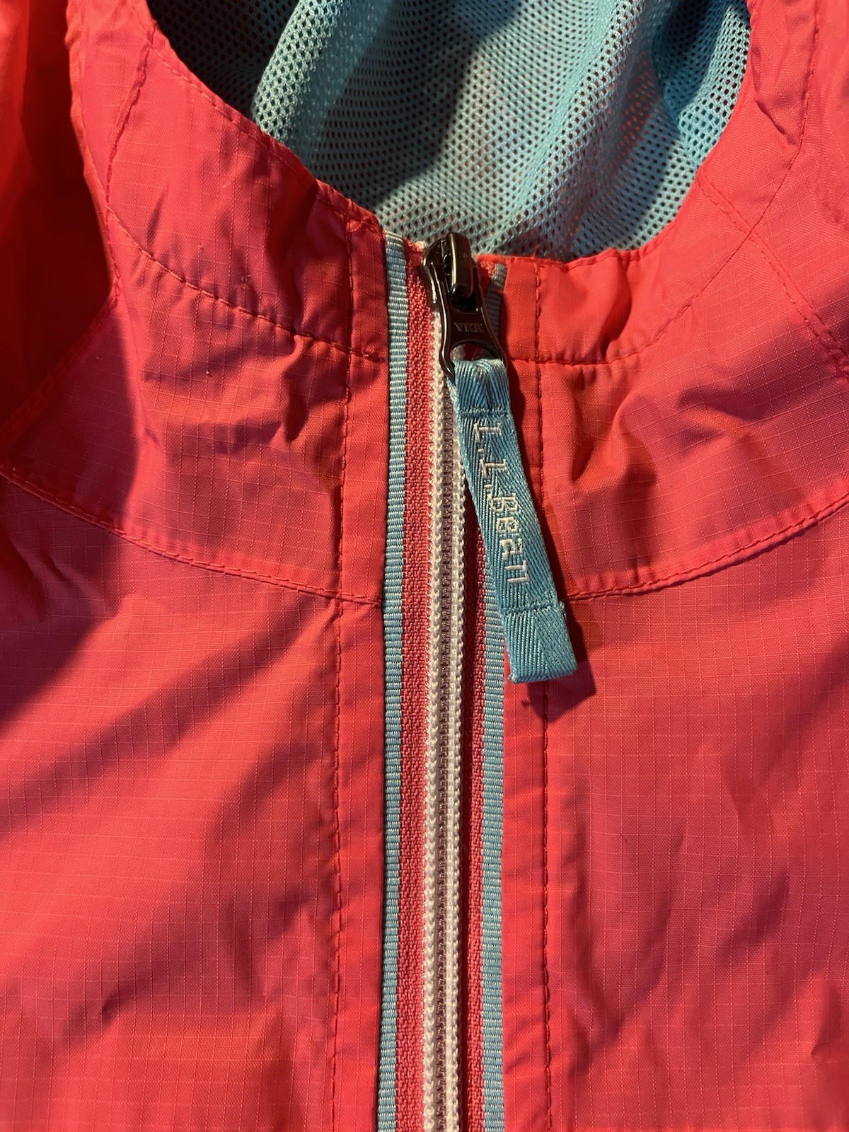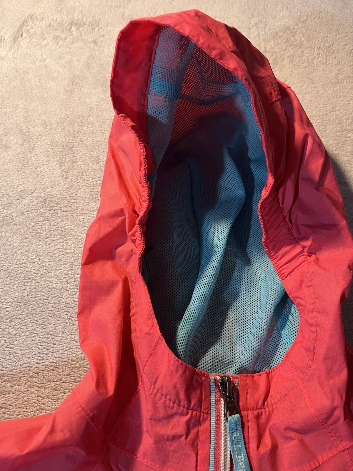 как выглядит L.L. Bean Discovery Rain Jacket Youth Size 10 W Hood Salmon Pink Mesh Lining фото