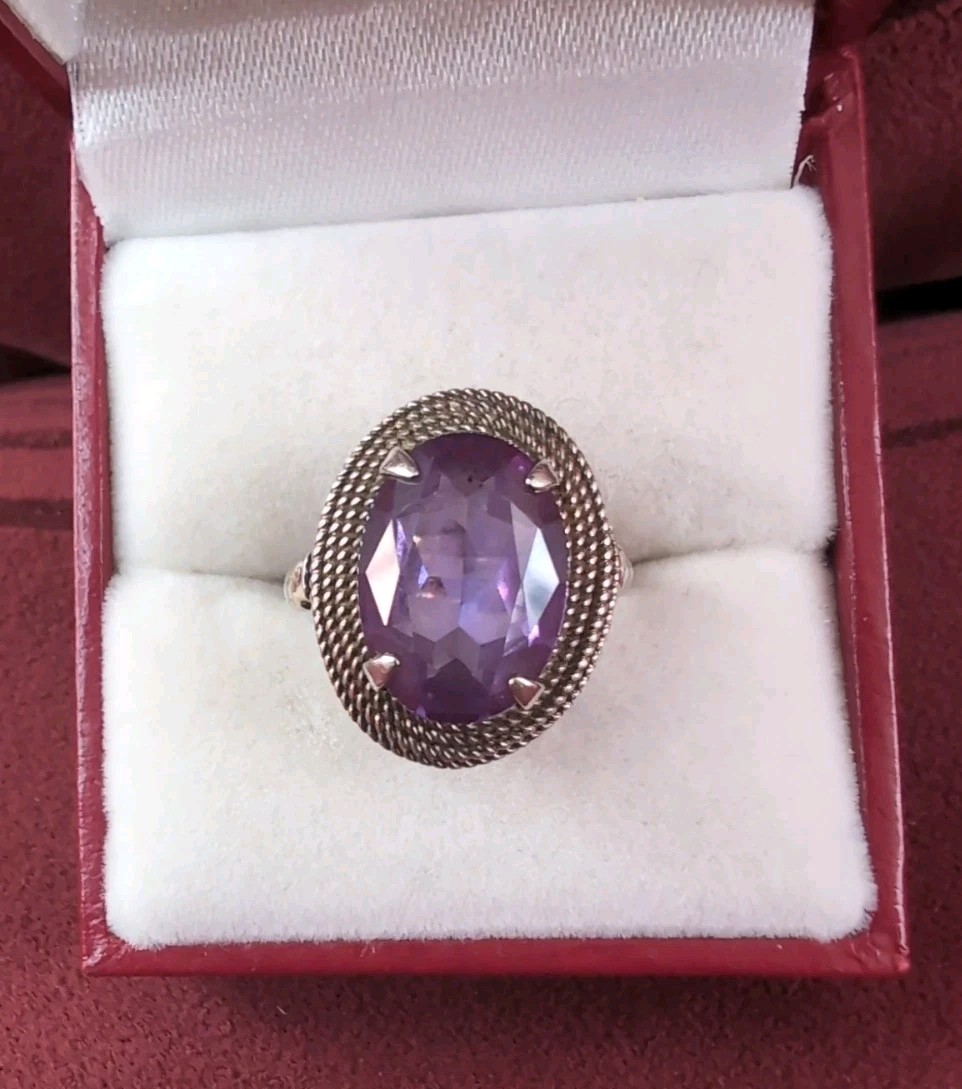 как выглядит Beautiful Faceted Amethyst Twisted Rope Design 925 Sterling Silver Ring Size 7 фото