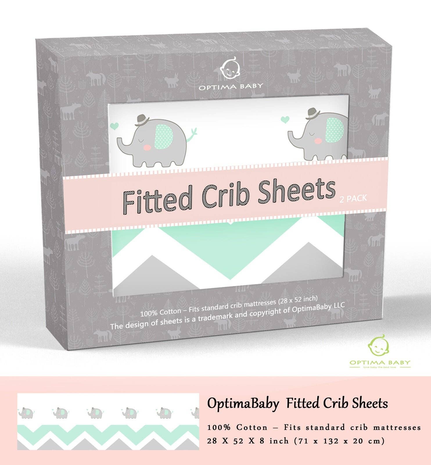 • OptimaBaby 2PCS Pack Green Elephant Chevron Fitted Crib Sheets