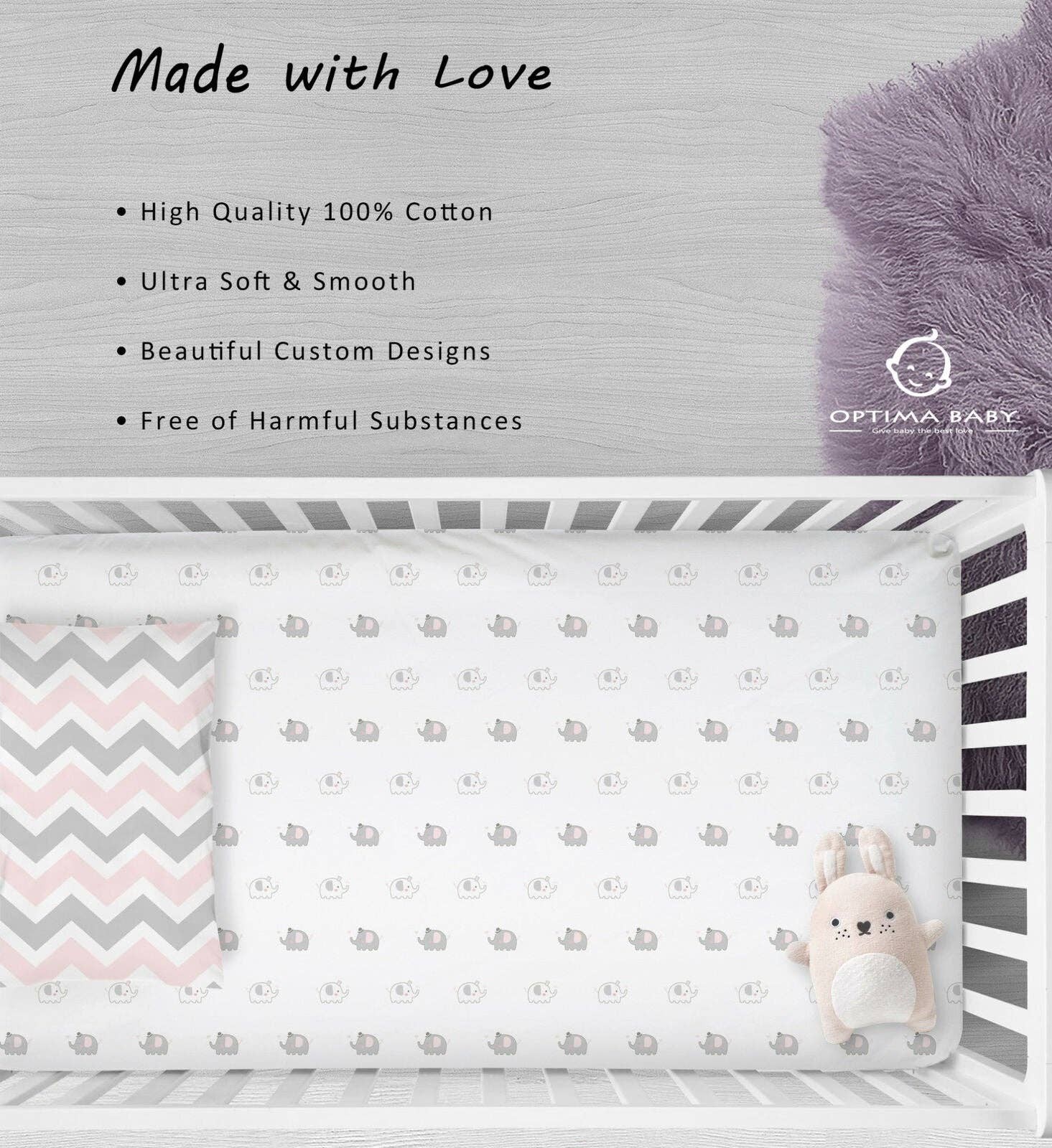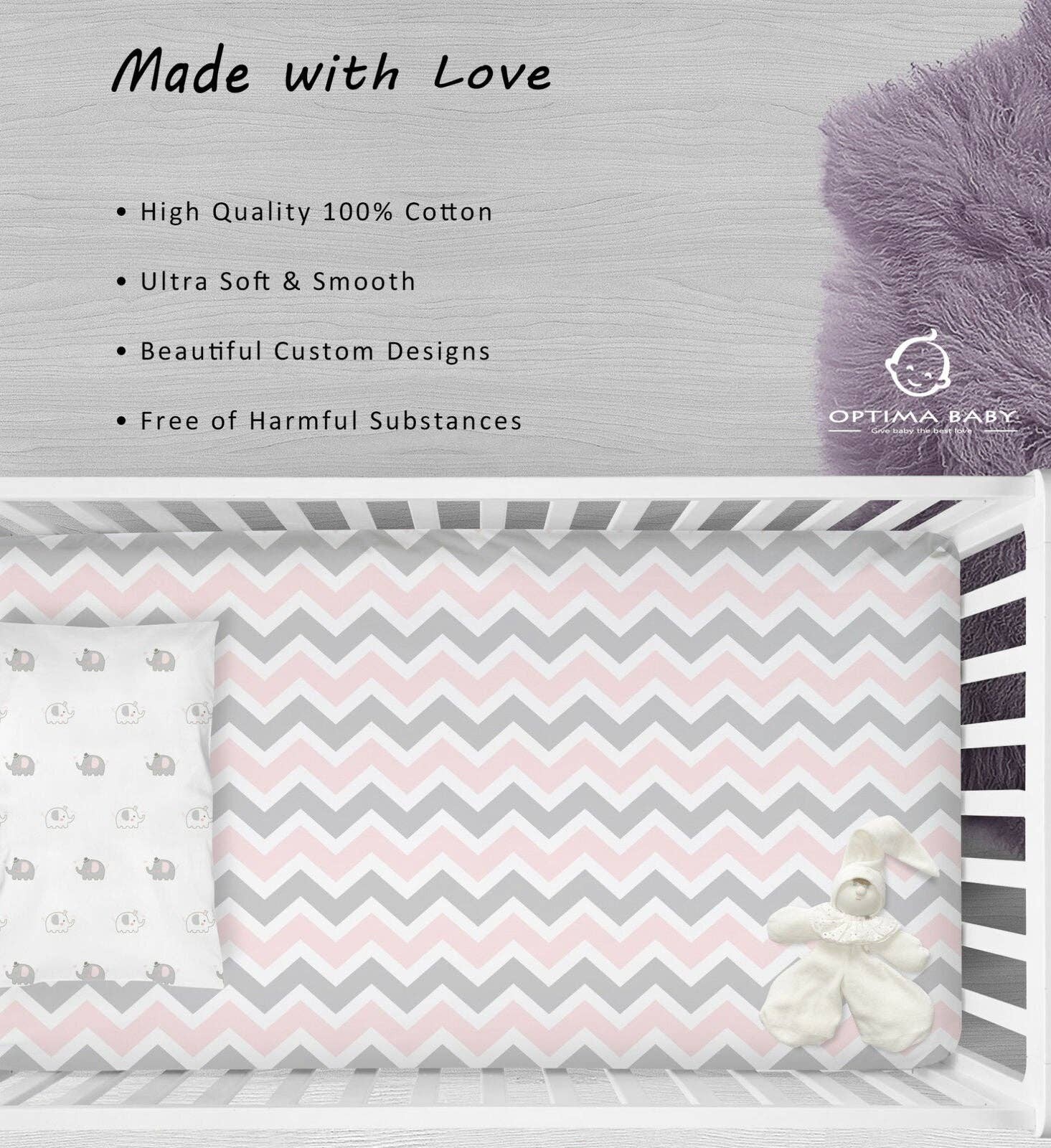 • OptimaBaby 2PCS Pack Pink Elephant Chevron Fitted Crib Sheets