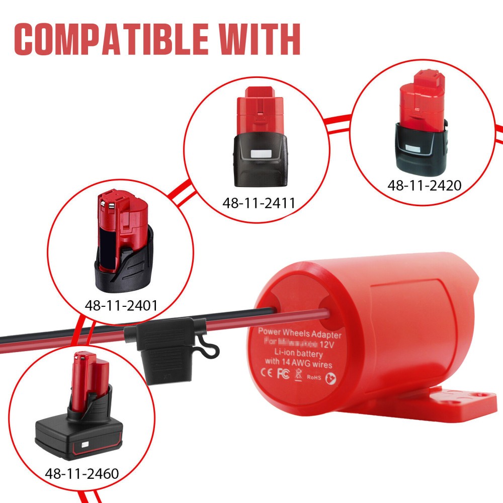 DIY Adapter Power Wheels Dock 14 AWG Compatible With Milwaukee M12 12V Battery