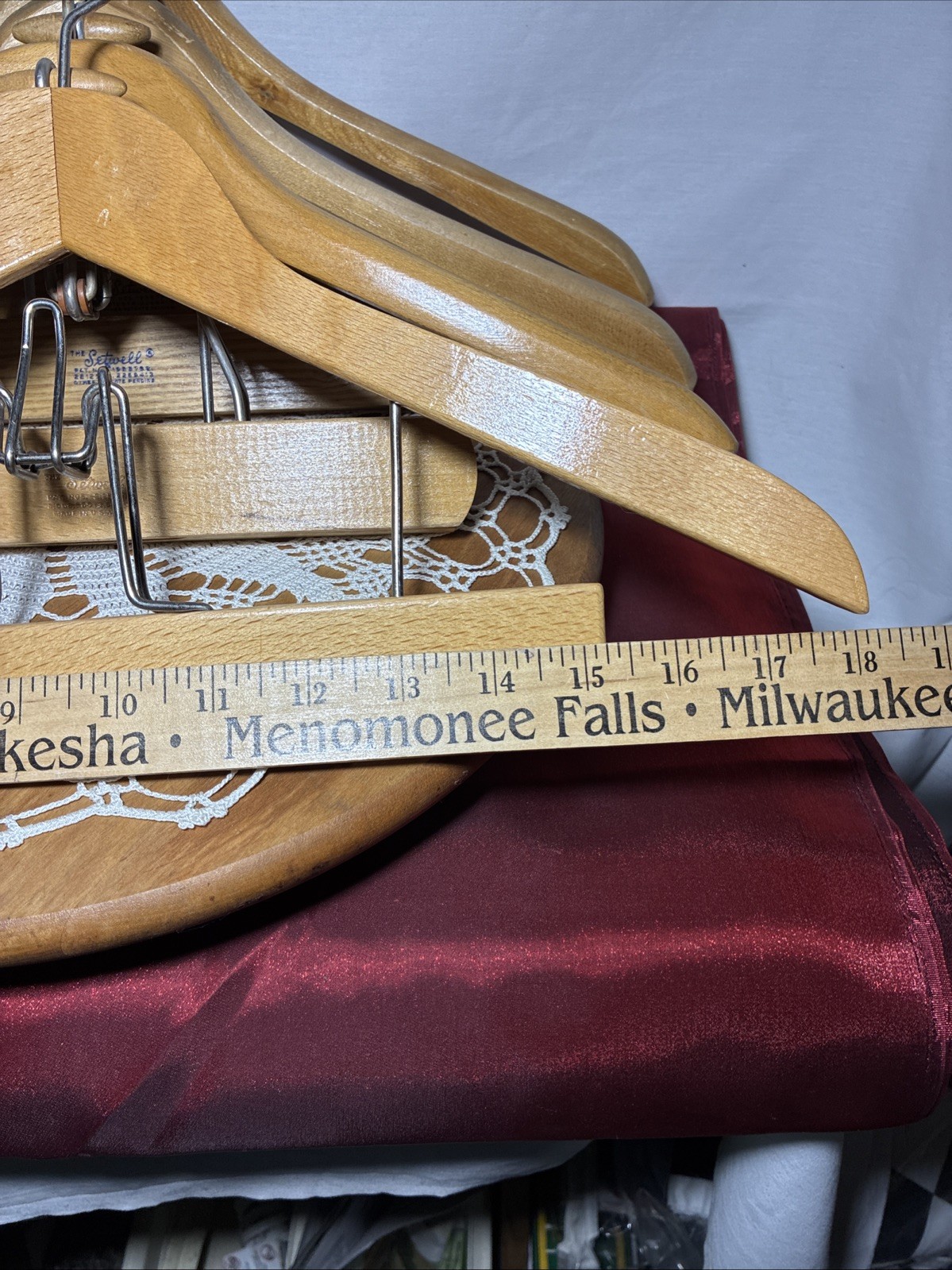 как выглядит Lot 4 SETWELL 18" BEEFY Wooden SUIT HANGERS Pants Jacket 1 Yugoslavia фото