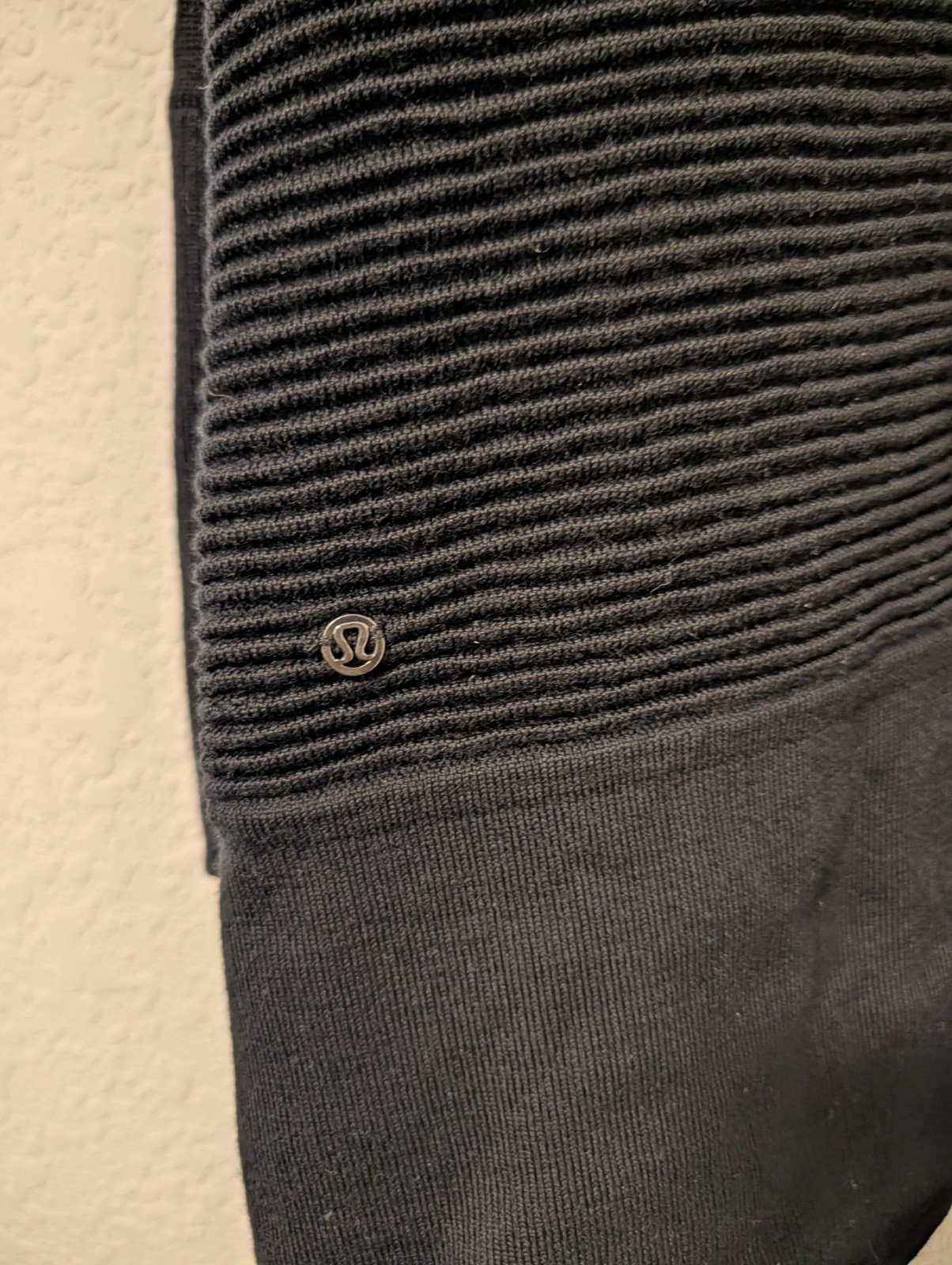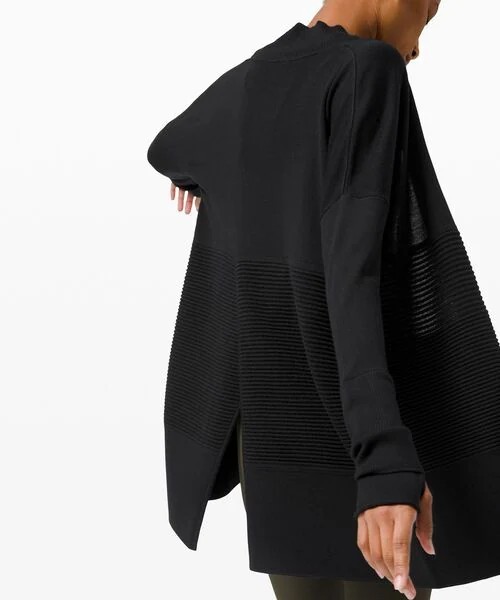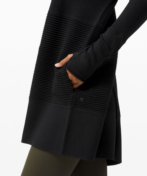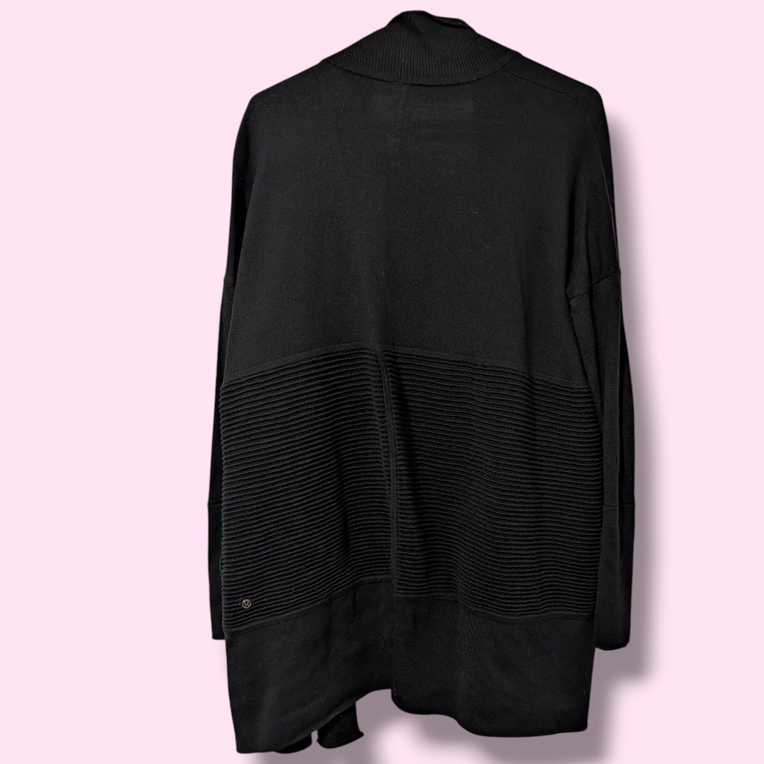 Lululemon Black 100 Merino Wool Ribbed Longline Open Front Sit In Lotus Wrap 6