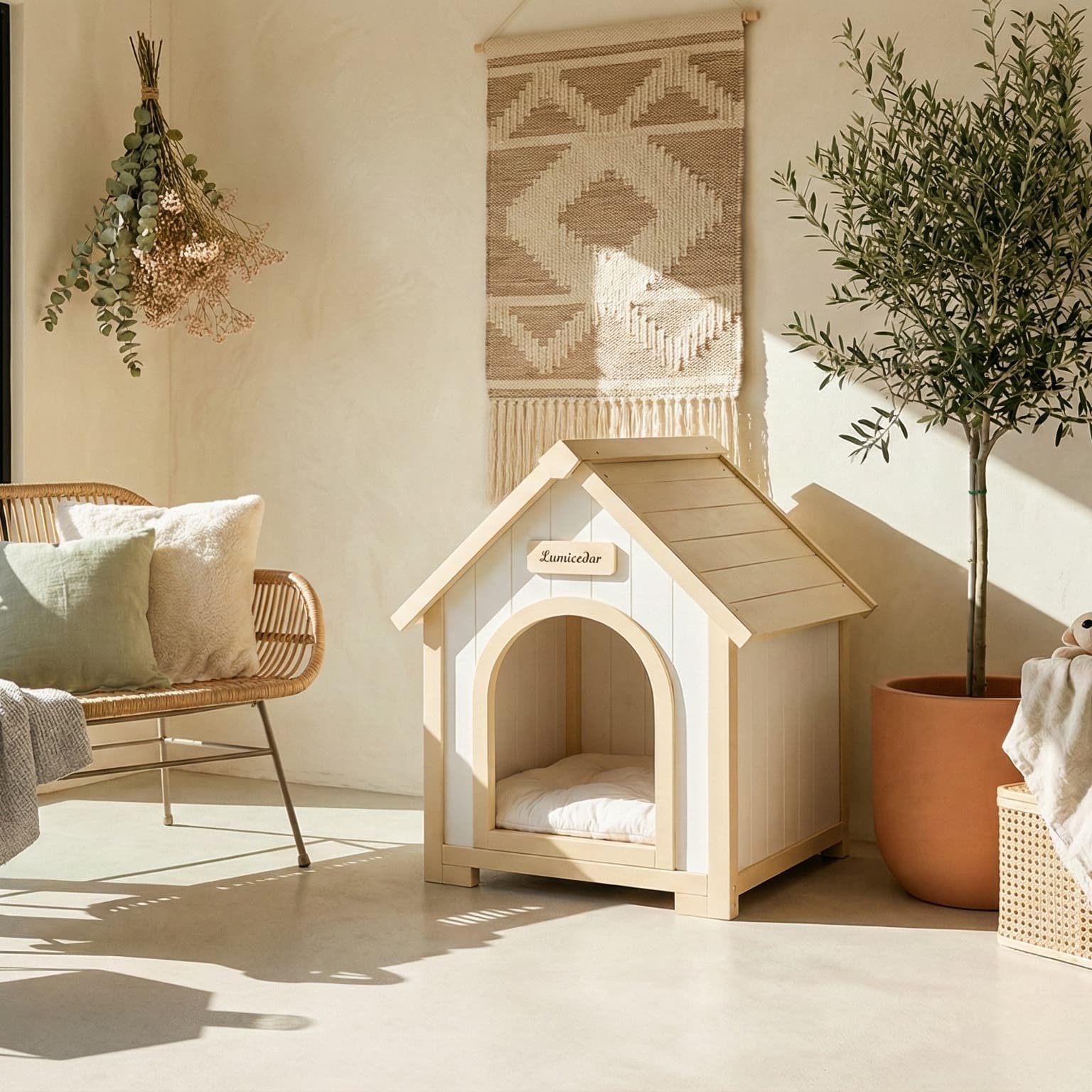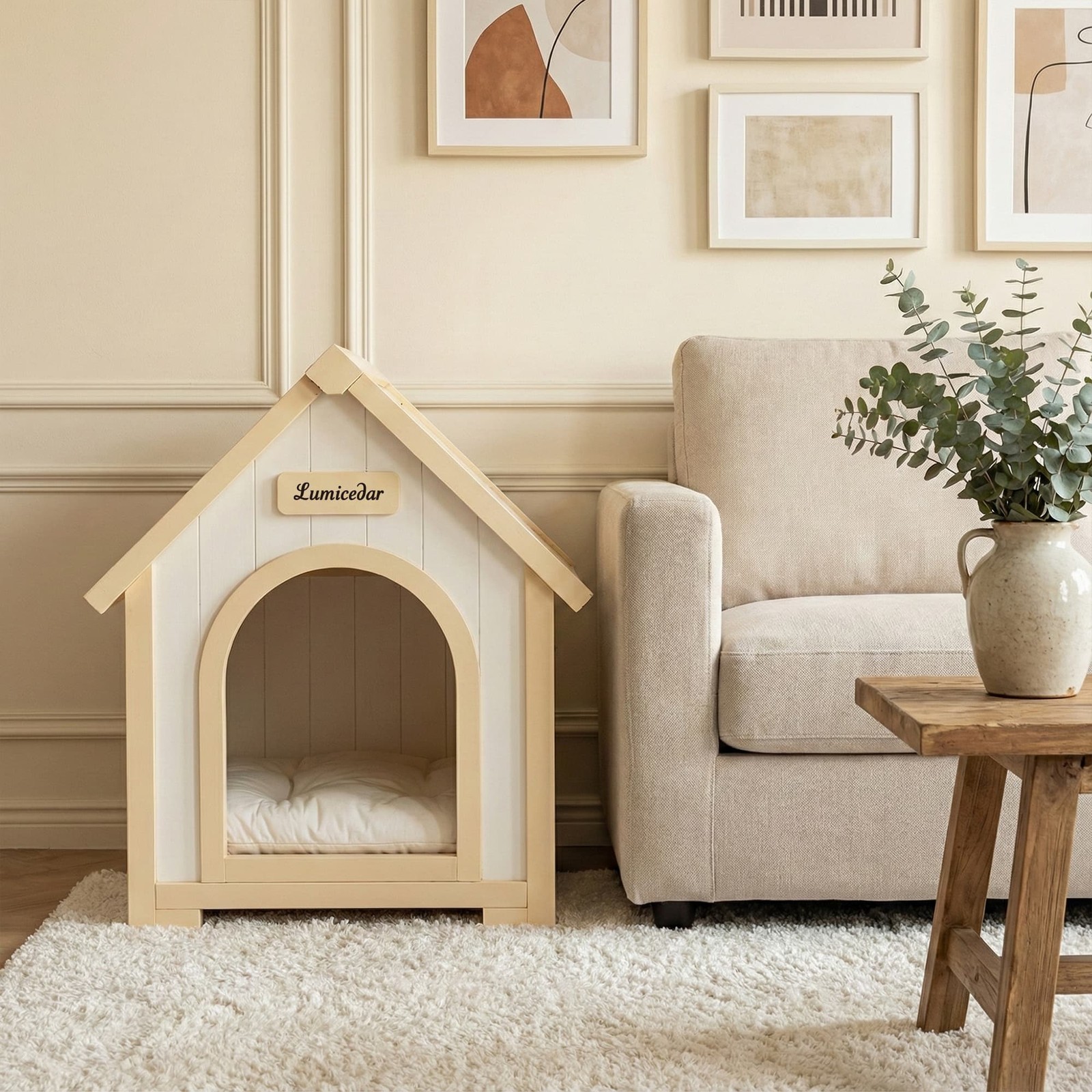 FSC Solid Cedar Cream Yellow Cabin Pet House Indoor Shelter For Small Dogs Cats