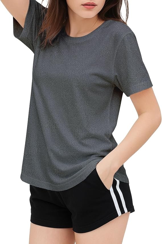 как выглядит Womens Short Sleeve Crew Neck Stylish T-Shirt Solid color S-XXXL Gray 6.34 oz фото